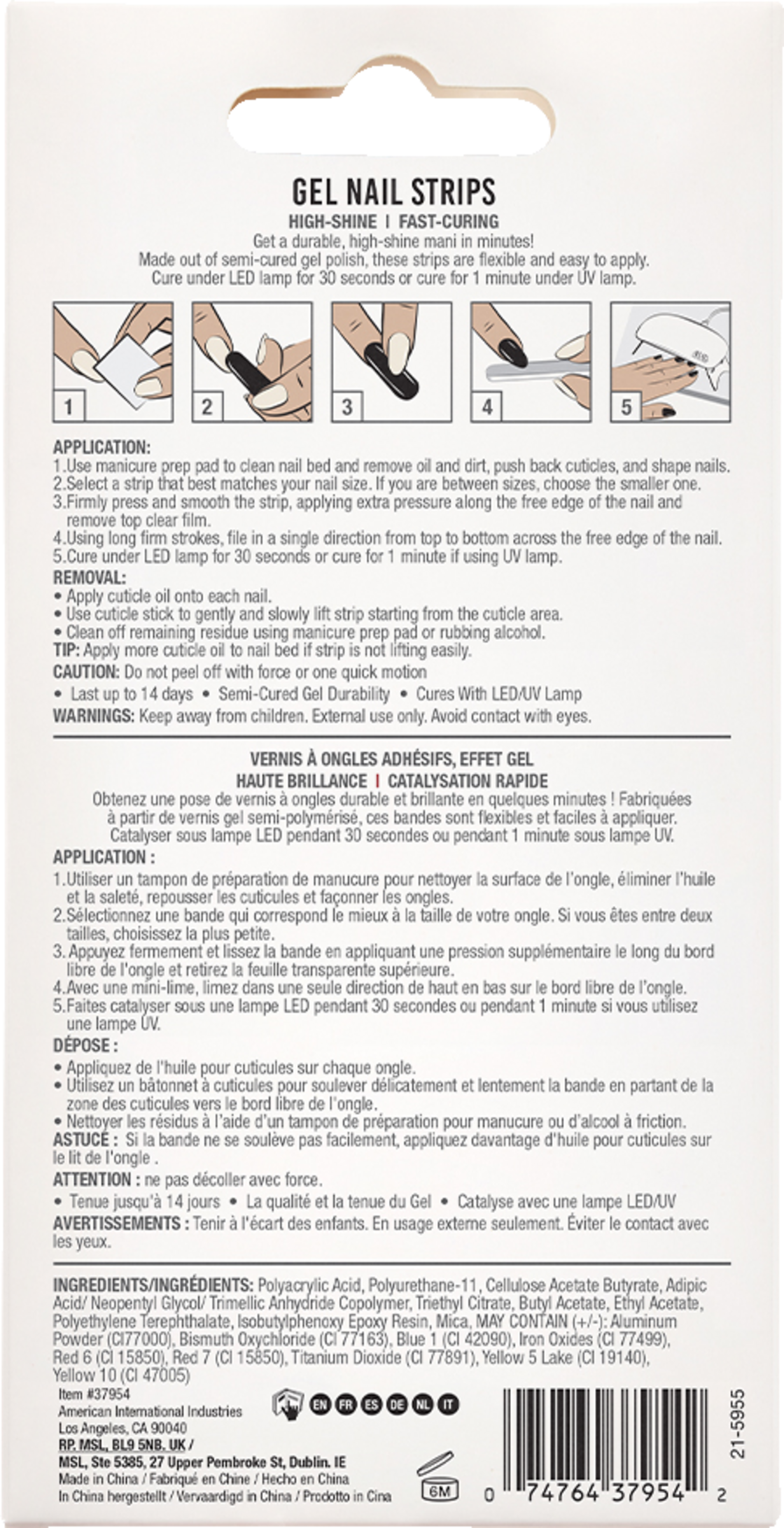 Eine dauerhafte, hochglänzende Maniküre in wenigen Minuten! Diese Streifen bestehen aus echtem, halb ausgehärtetem Gel-Nagellack und sind flexibel und einfach aufzutragen. Aushärtung unter LED-Lampe für 30 Sekunden oder Aushärtung für 1 Minute unter UV-Lampe.