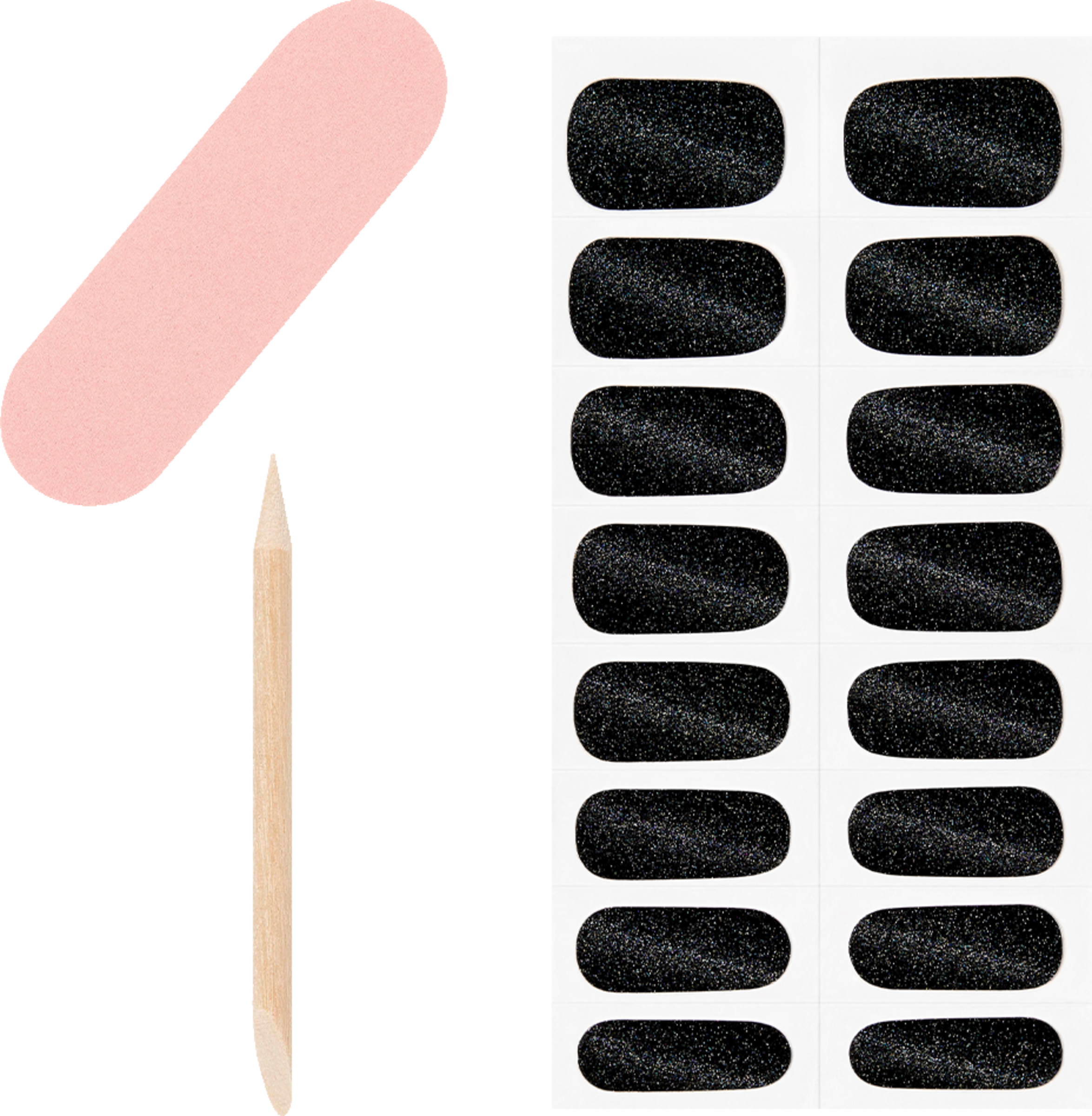 Enthält: 16 Gel-Nagelstreifen, 1 Mini-Nagelfeile, 1 Orangenholzstäbchen