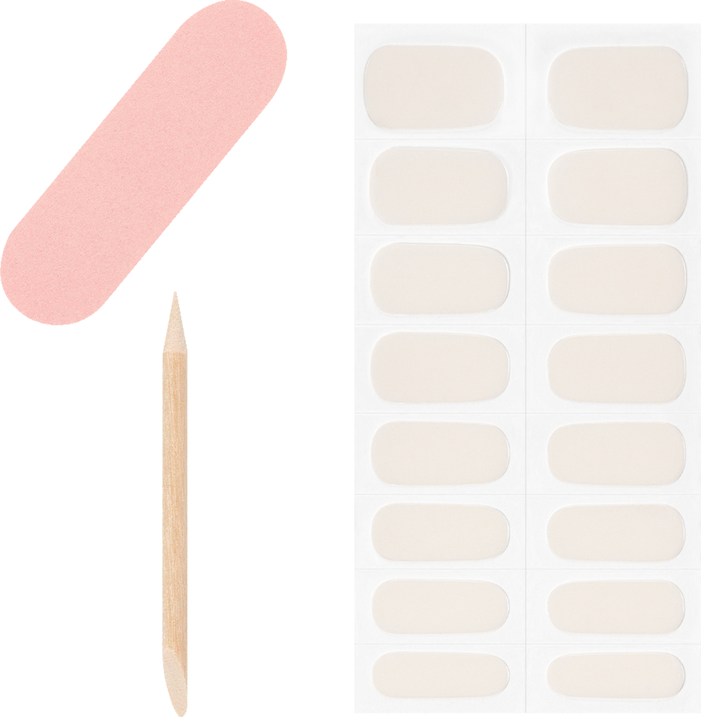 Enthält: 16 Gel-Nagelstreifen, 1 Mini-Nagelfeile, 1 Orangenholzstäbchen