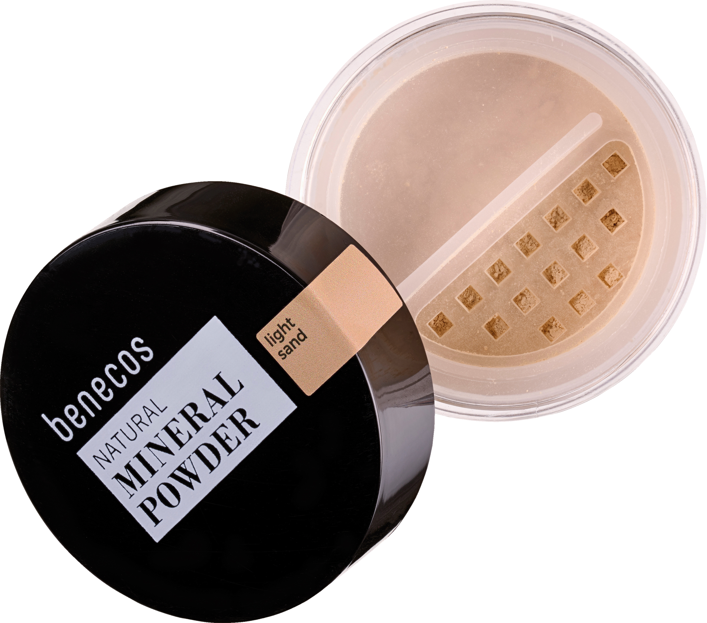 Gib etwas Mineral Powder in den Deckel der Puderdose.