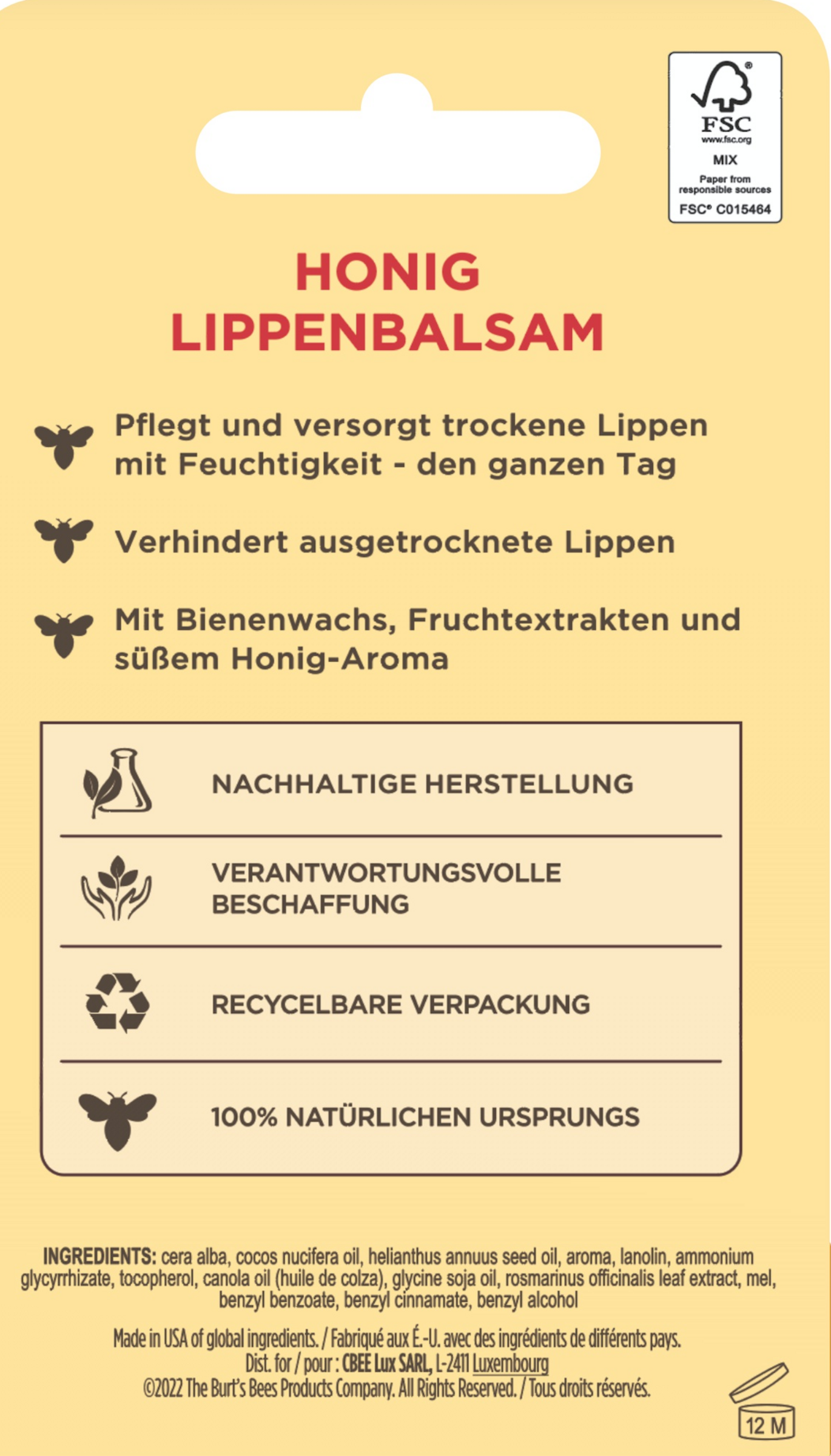 - mit Bienenwachs, Fruchtextrakten und süßem Honig-Aroma
