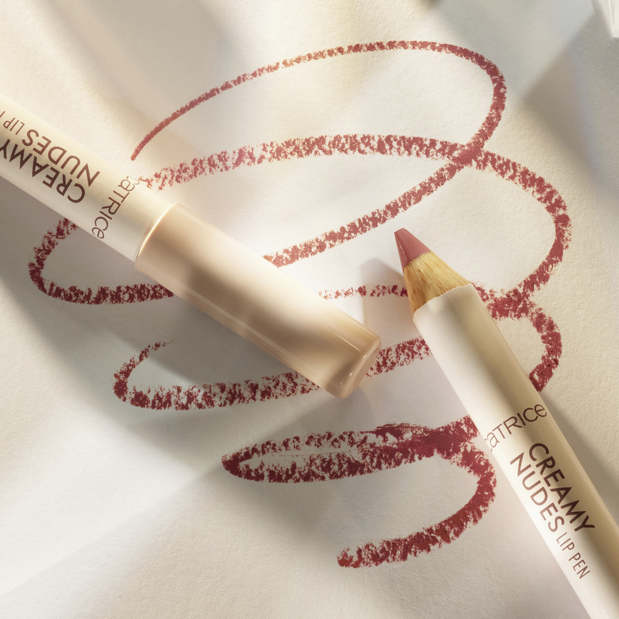 Mit der Spitze des Catrice Creamy Nudes Lip Pen 020 Daytime Nude werden die Lippen zunächst umrandet und dann ausgefüllt. Überzeuge dich von der hohen Deckkraft der Farbe!