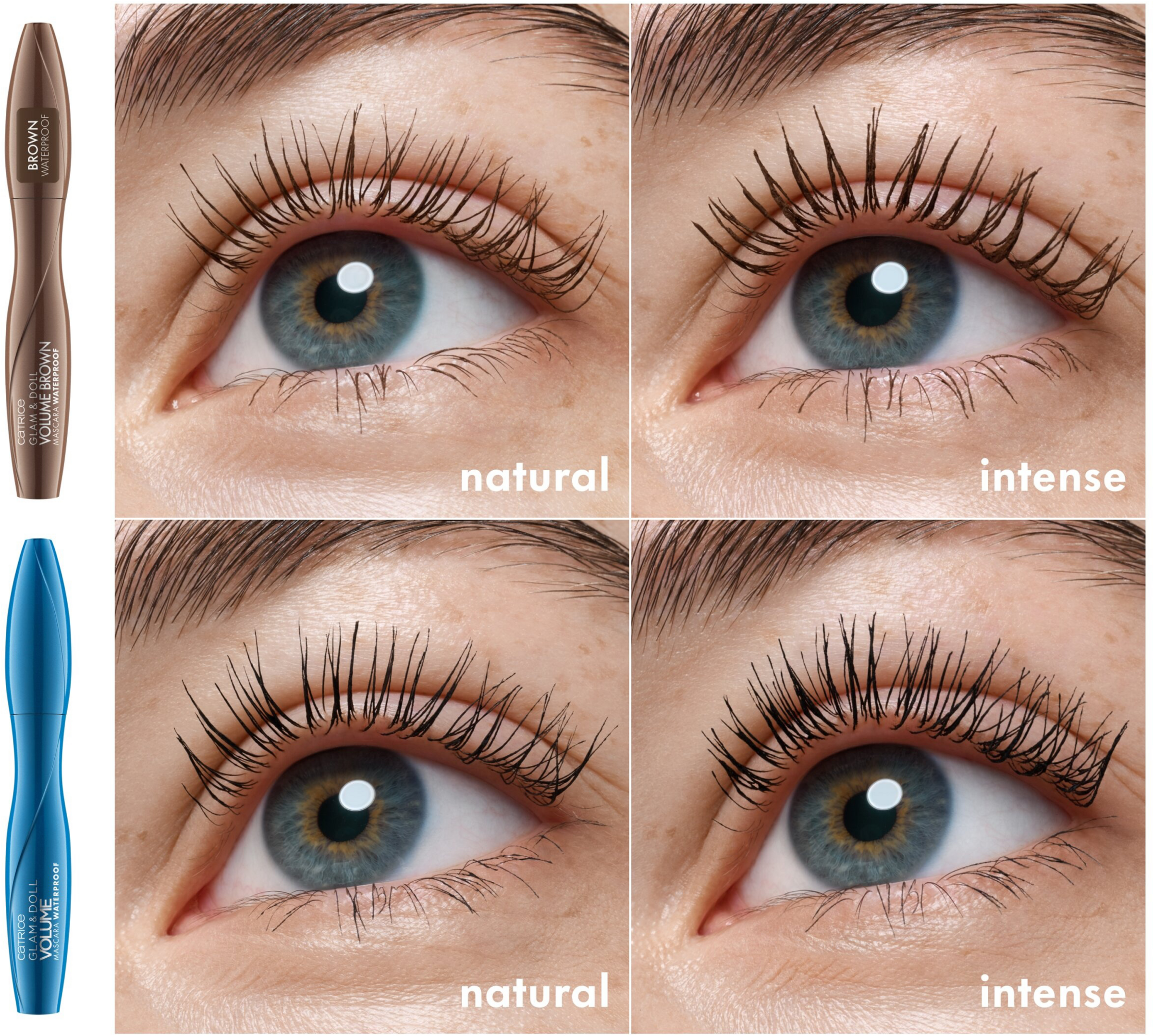 Besonders langanhaltende voluminöse Wimpern gelingen mit der Glam & Doll Volume Mascara Waterproof. Das spezielle Elastomer-Bürstchen nimmt viel der cremig schwarzen Textur auf und umhüllt so jede einzelne Wimper, ohne sie zu beschweren. Das Ergebnis sind extra Volumen, faszinierende Länge sowie einzigartiger Schwung – den ganzen Tag lang! Augenärztlich getestet.