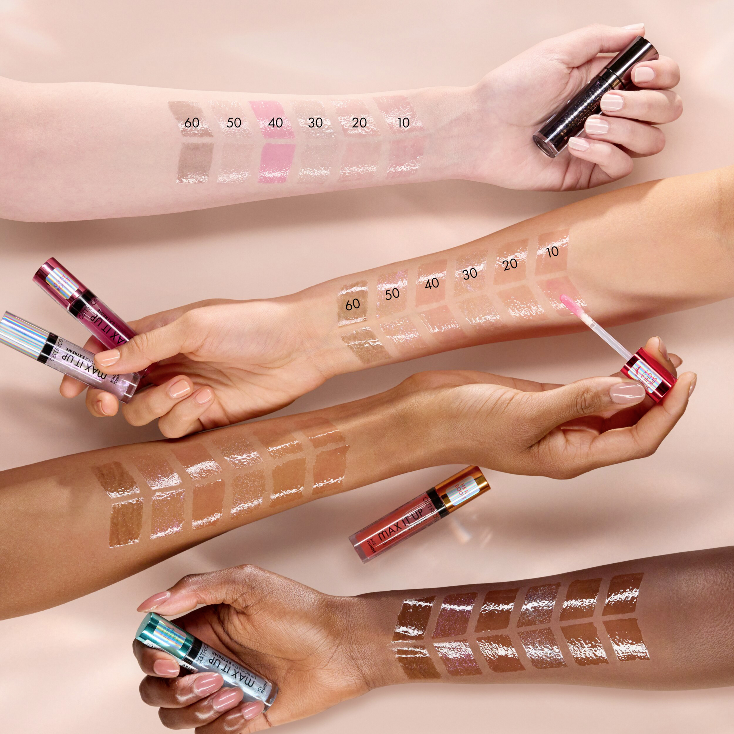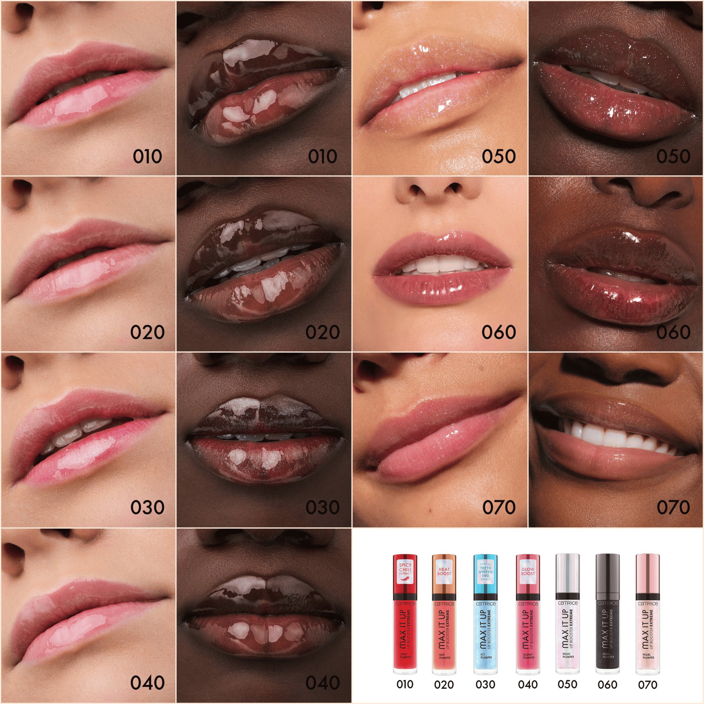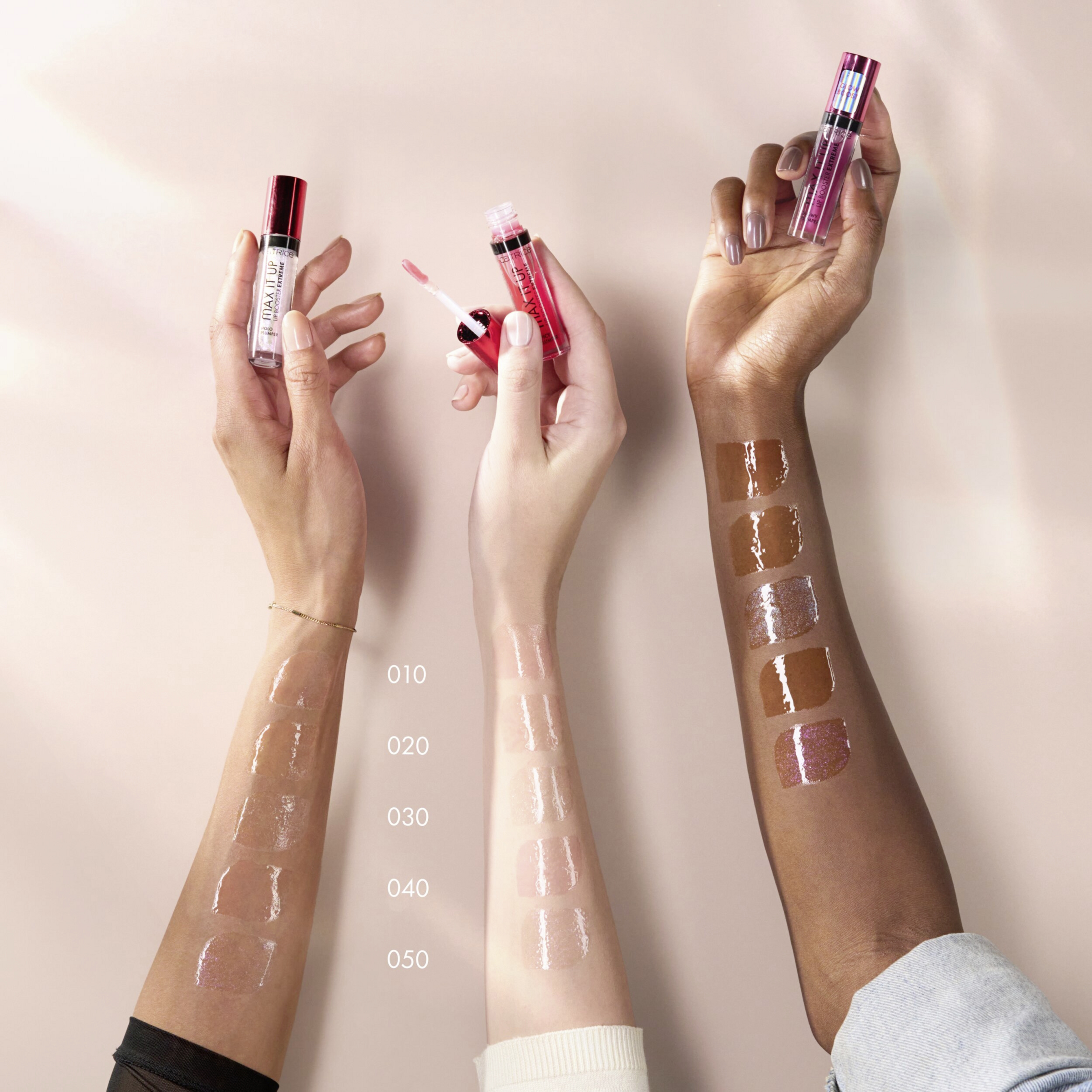 Get plumped: Mit dem Catrice Max It Up Lip Booster Extreme 050 Beam Me Away erhalten deine Lippen einen außergewöhnlichen Boost. Der transluzente Lipgloss mit Plumping-Effekt sorgt für einen holographischen Schimmer und deine Lippen sehen dadurch praller und voller aus, ohne zu kleben. Dank des Holo-Shimmers lässt sie der Lip Plumper außergewöhnlich glänzen. Spiele mit dem besonderen holografischen, aber tragbaren Effekt und erfreue dich an der Wirkung praller, voller Lippen – ob für ein Lover Date oder ein Date mit dir selbst.