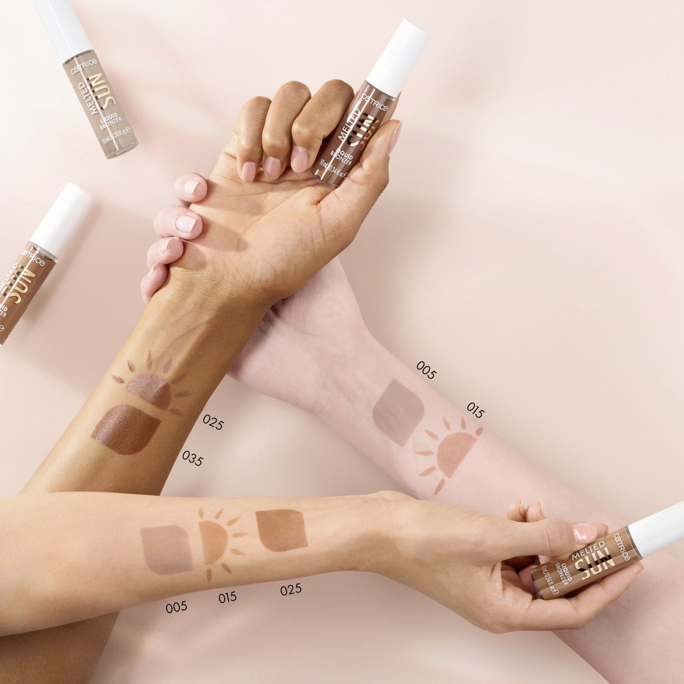 Für den perfekten Urlaubslook trägst du den Catrice Melted Sun Liquid Bronzer 015 Sunkissed entweder mit einem Schwämmchen oder Pinsel auf. Entscheide nach Lust und Laune, wie viele Schichten du auftragen möchtest. Egal, welcher Look es sein soll, der Liquid Bronzer lässt sich ganz einfach verblenden und sorgt für ein perfektes, natürliches Ergebnis – wie frisch aus dem Urlaub zurück.