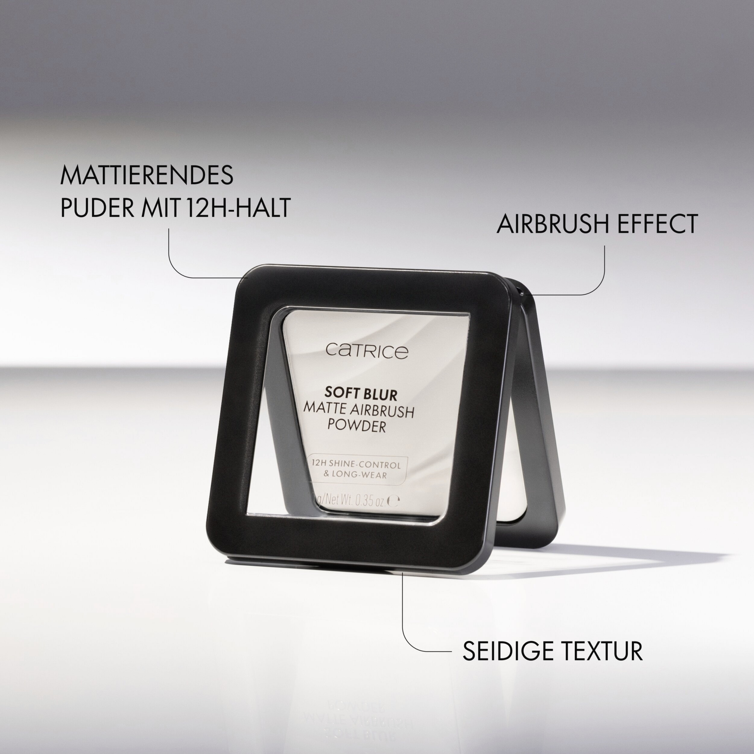 Ein ebenmäßiger, weichgezeichneter Teint in Sekundenschnelle – mit dem Catrice Soft Blur Matte Airbrush Powder 001N. Das transparente Kompaktpuder mit ultraleichter Textur sorgt sofort für ein mattiertes Finish, reduziert sichtbar Poren und Unebenheiten und verleiht der Haut einen Airbrush-Effekt. Die Formel kontrolliert Glanz für bis zu 12 Stunden und überzeugt mit ebenso langem Halt – ganz ohne auszutrocknen. Überschüssiges Öl wird absorbiert, während sich das seidig-leichte Puder gleichmäßig auf der Haut verteilen lässt, ohne sich in feinen Linien abzusetzen oder maskenhaft zu wirken. Zudem ist das Puder frei von Duftstoffen und sorgt mit stilvollem Pressmuster für einen Hauch Eleganz.
