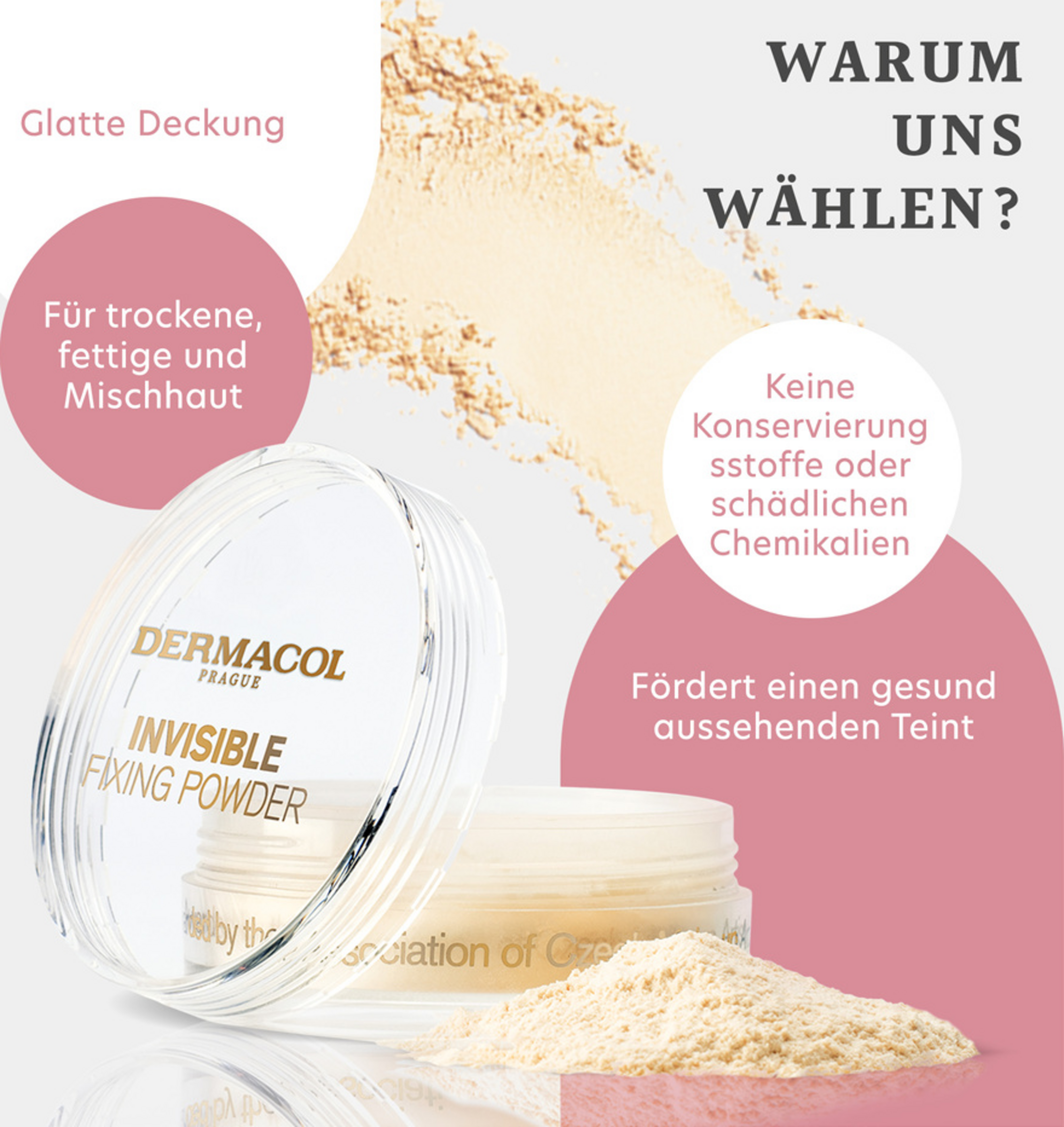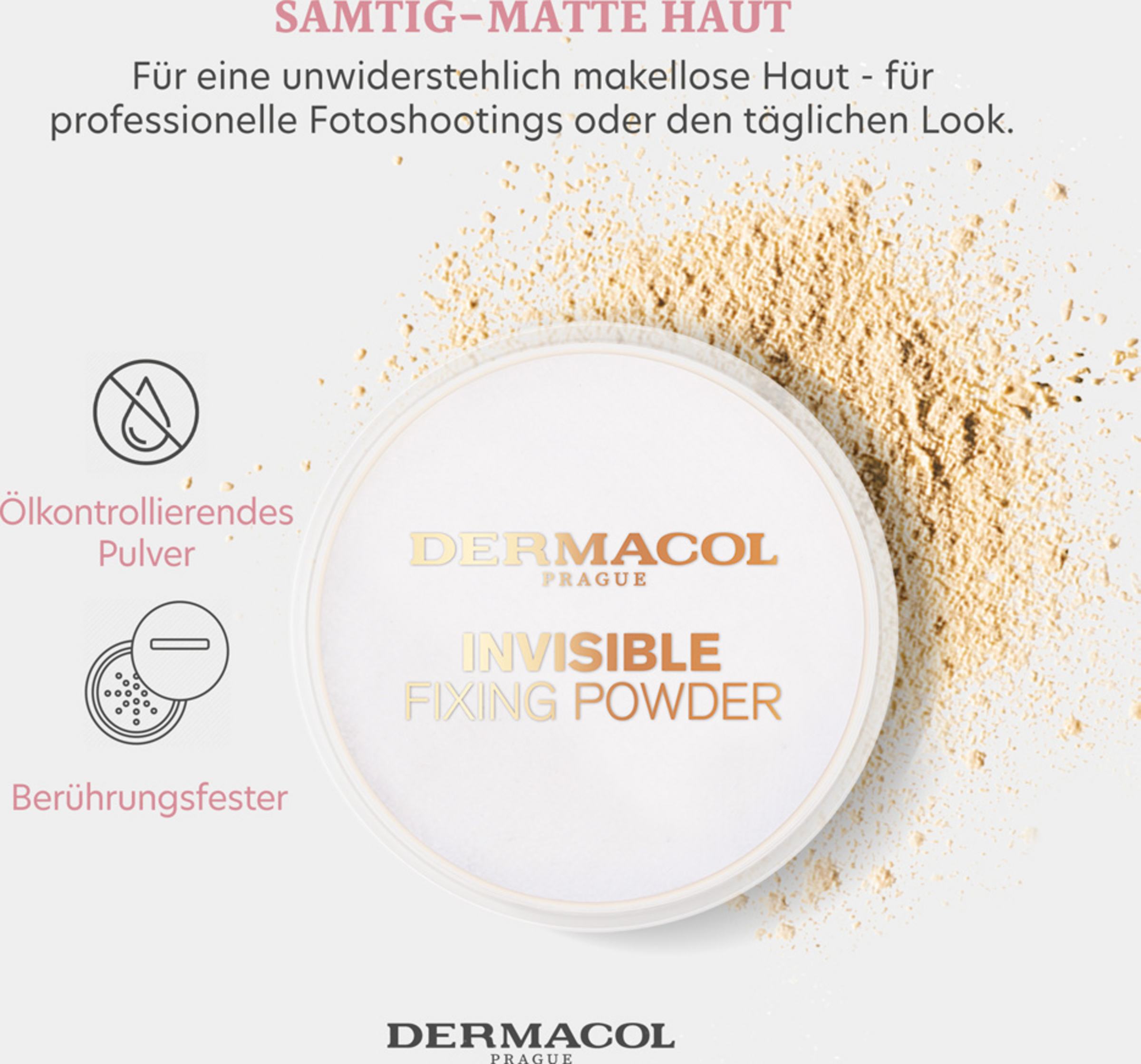Das transparente Puder Dermacol Invisible fixiert das Make-up perfekt, mattiert die Haut und macht sie geschmeidig wie Samt.In der Verpackung ist auch eine praktische Quaste enthalten, mit der Ihnen das Auftragen des Puders immer gut gelingt.