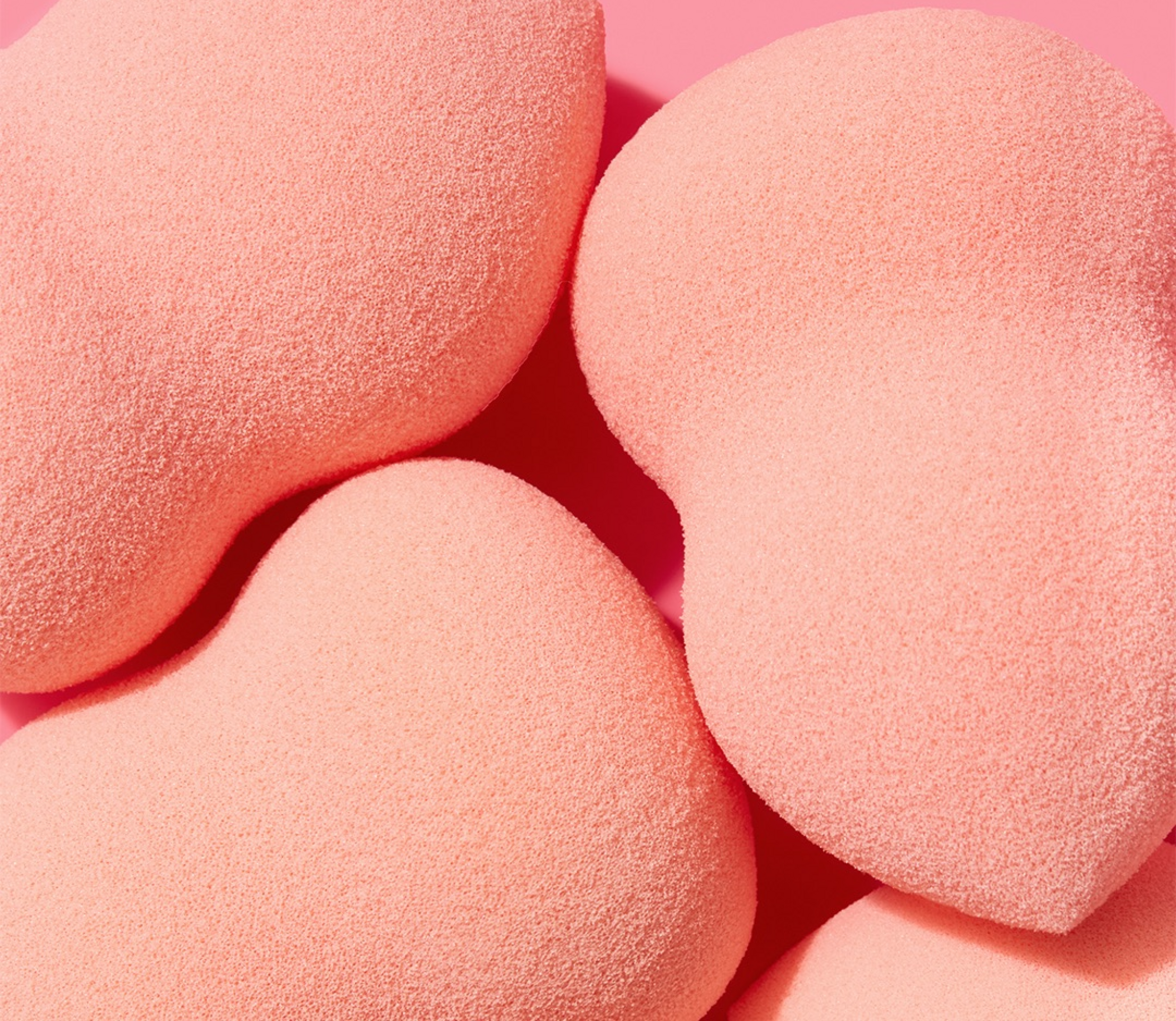 Tauche das Schwämmchen in deine Foundation oder deinen Concealer und trage sie mit tupfenden Bewegungen auf das Gesicht auf. Klopfe das Produkt leicht ein, um es zu verblenden. Verwende das abgerundete Ende, um größere Bereiche abzudecken, und das schmalere Ende um Nase, Mund und Augen herum.