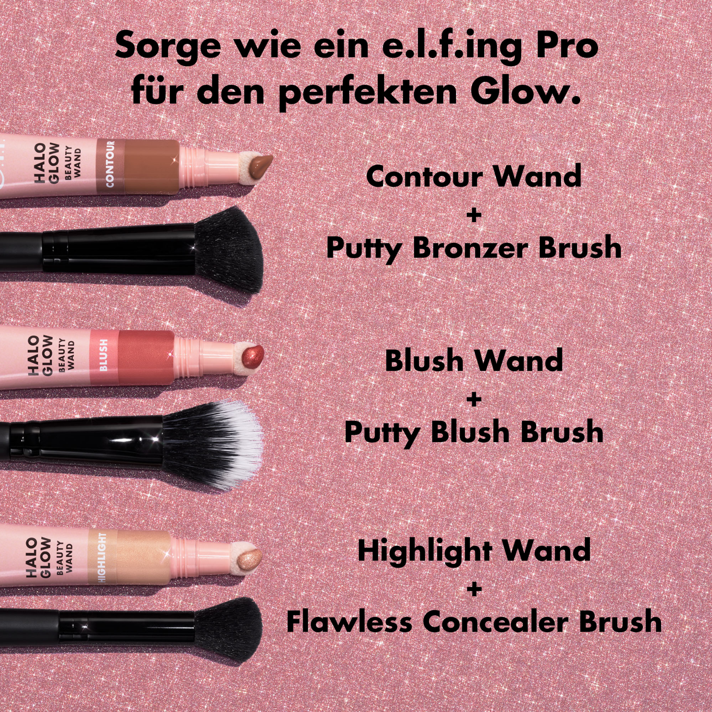 Die Tube vorsichtig zusammendrücken und den Highlighter mit dem weichen Applikator auf die höchsten Stellen des Gesichts auftragen (z. B. Nasenspitze, Brauenknochen und Kinn). Die Farbe anschließend mit dem Flawless Concealer Brush für einen strahlenden Look verblenden.Für einen perfekt modellierten Look mit dem Halo Glow Blush Beauty Wand und dem Halo Glow Contour Beauty Wand kombinieren.