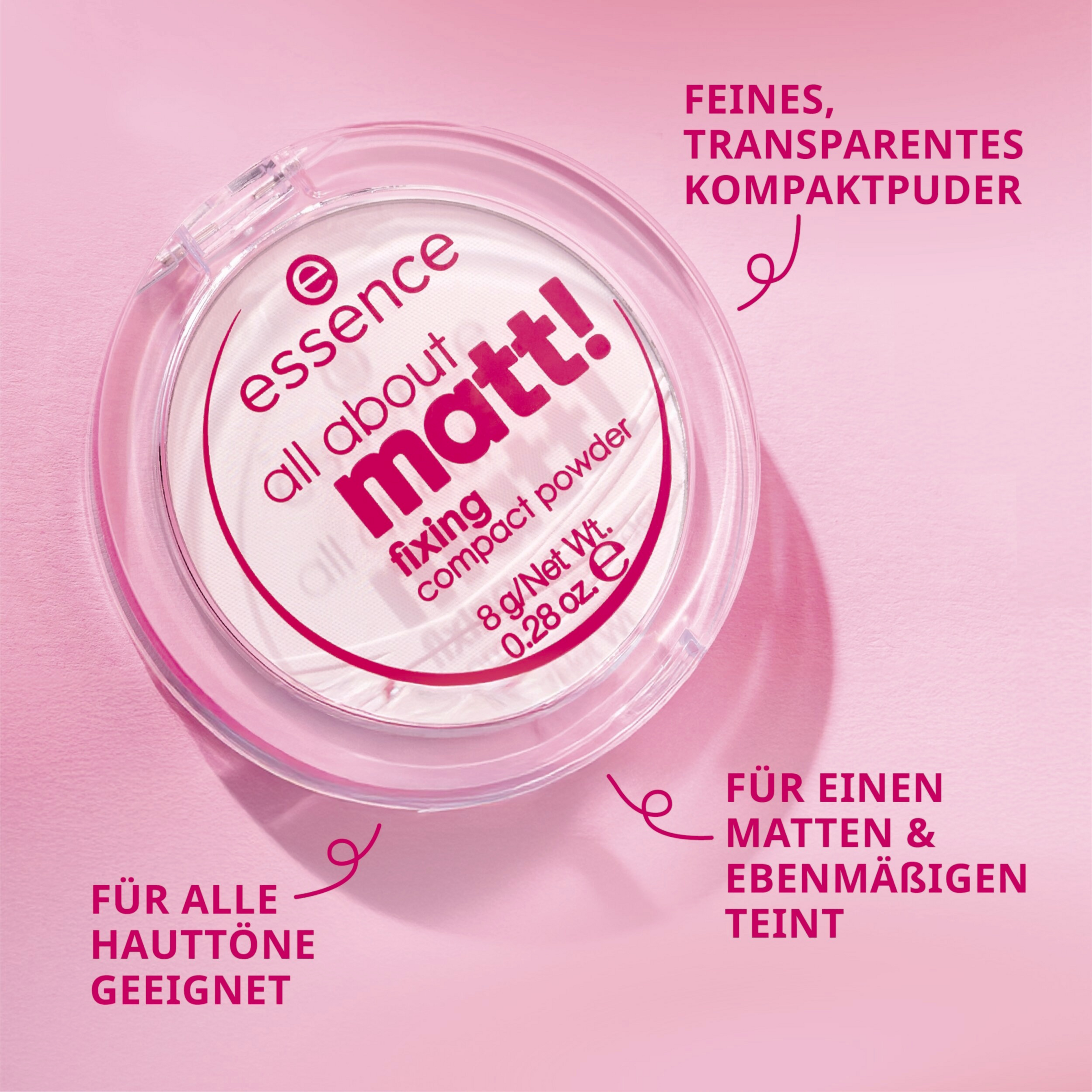 Der sehr feine, transparente Kompaktpuder kann über die Foundation aufgetragen werden, um den Teint zu mattieren und das Make-up zu fixieren. Für einen matten, natürlichen und ebenmäßigen Teint. Erhältlich in einer transparenten Farbe für alle Hauttypen und damit auch perfekt für unterwegs bei Unternehmungen mit den Freundinnen.