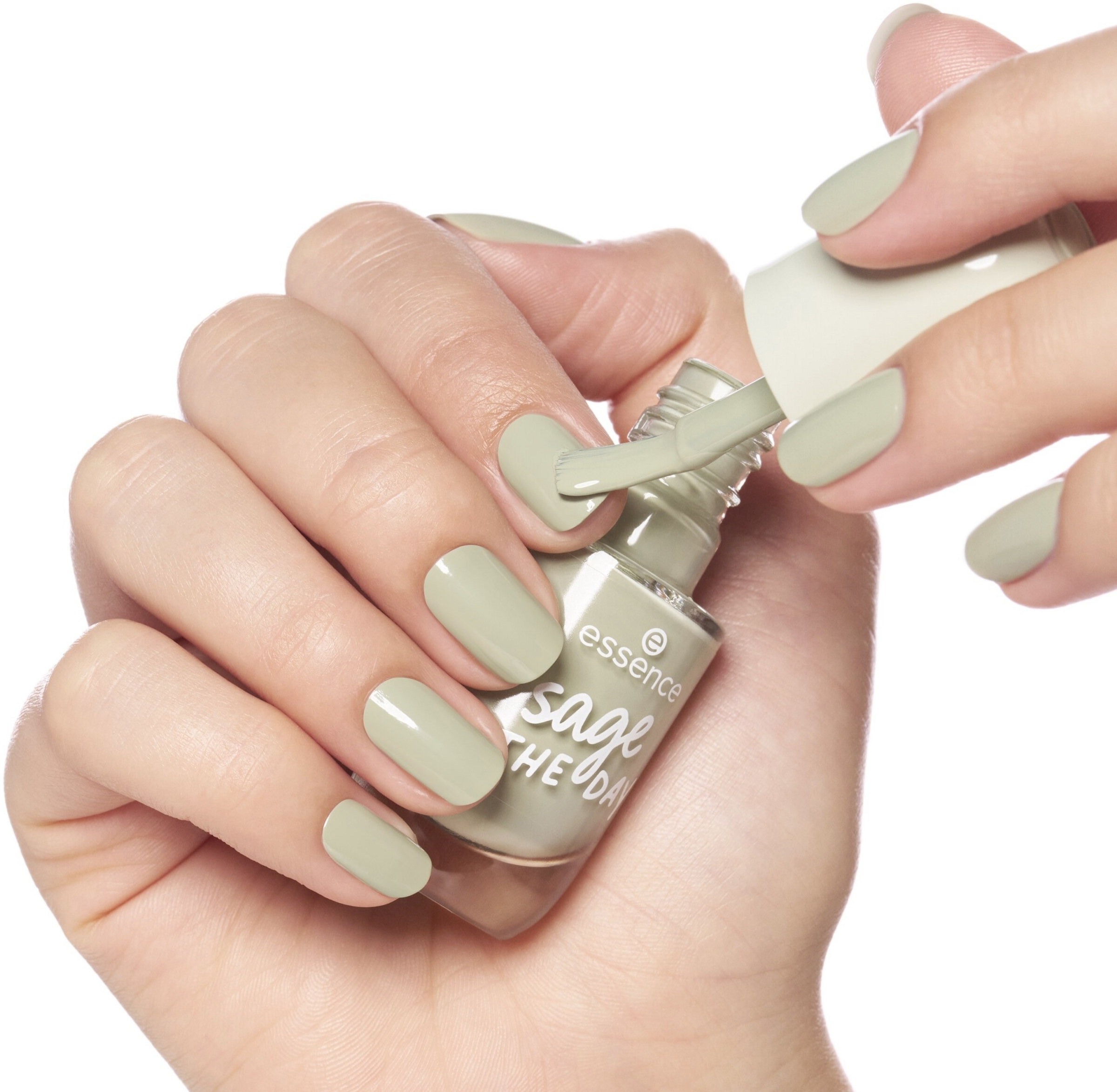 Der essence gel nail colour 85 sage THE DAY in einem soften Salbeigrünton überzeugt ohne Kompromisse: Dank des patentierten, breiten double touch Pinsels lässt sich der farbintensive Lack besonders einfach auftragen. Zusätzlich trocknet er extrem schnell – in nur 40 Sekunden. Das langanhaltende Gel-Finish sorgt für intensiven Glanz und ein perfektes Ergebnis. Und das alles in einer veganen Clean-Beauty-Formel mit reduzierter Inhaltsstoffliste – ganz ohne Mikroplastikpartikel! Der gel nail colour 85 sage THE DAY ist Teil der beliebten gel nail colour Reihe.
