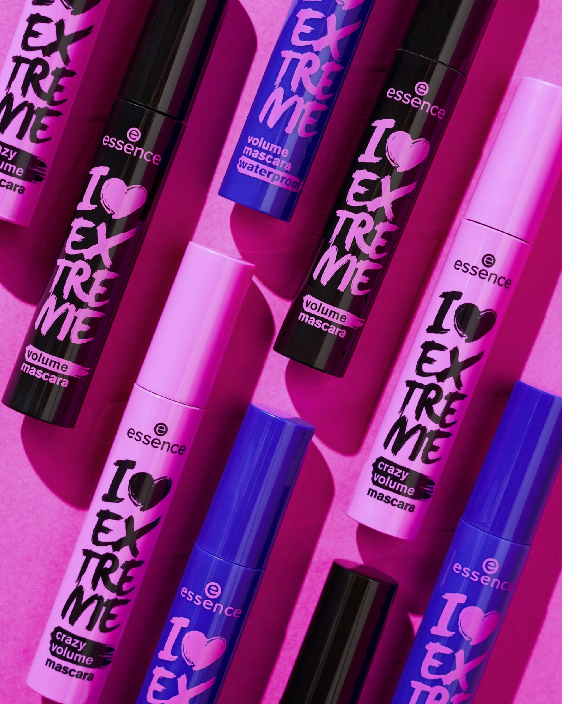 Lashes to love. Für alle, die extremes Volumen auch beim Sport oder Schwimmen mögen, gibt es die wasserfeste Schwester der beliebten I love extreme volume mascara. Die Textur mit ultra-schwarzen Pigmenten umhüllt jede einzelne Wimper und das extra große Bürstchen verleiht Volumen. Nicht nur im Sommerurlaub ein echtes Highlight!