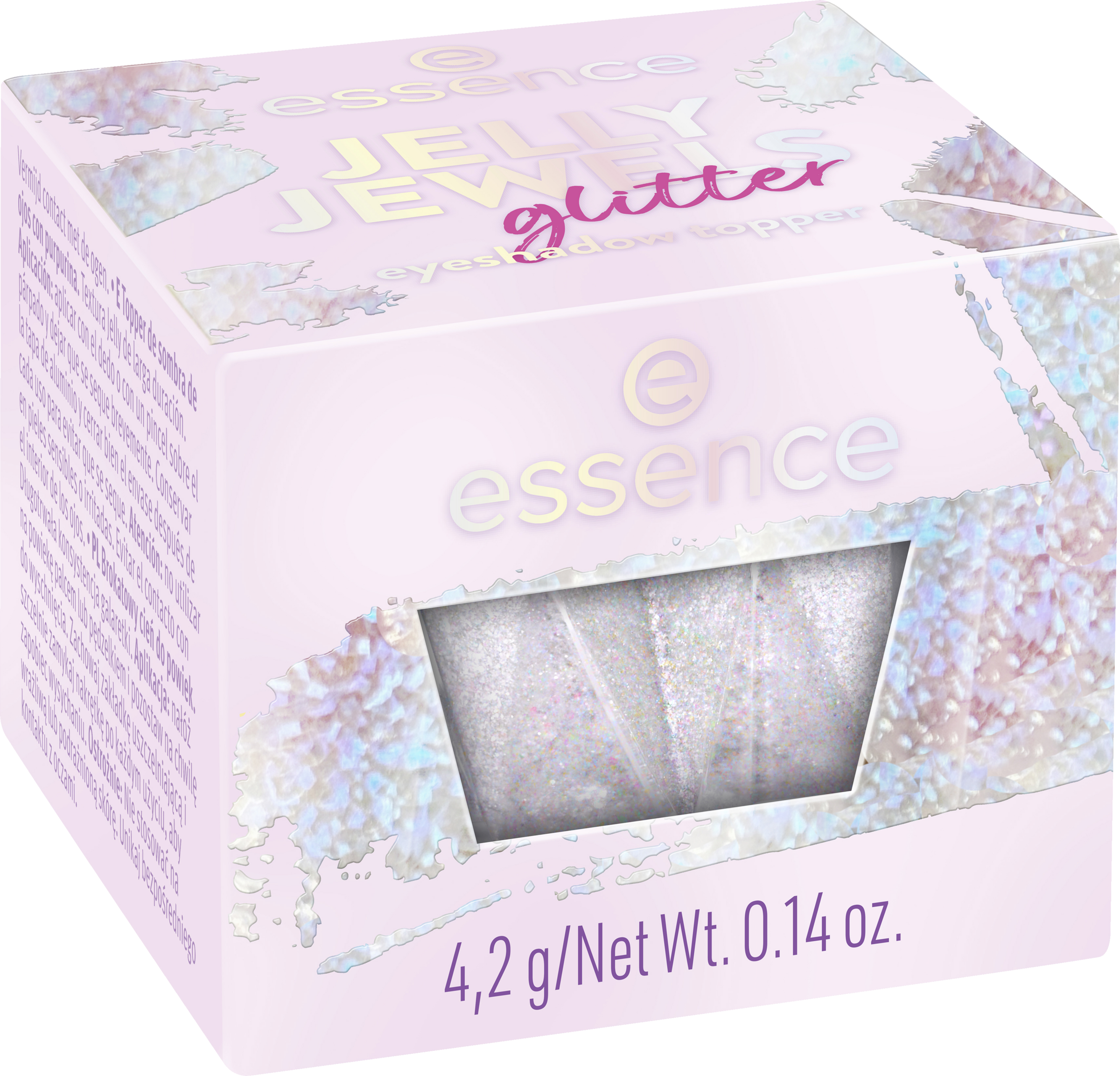 Verstärke dein Augen-Make-up mit dem essence JELLY JEWELS glitter eyeshadow topper 02 Celestial Shimmer! Diesen ultra-glitzernden, leichten Topper kannst du entweder alleine tragen oder über deinen Lieblingslidschatten auftragen, um einen schimmernden, langanhaltenden Effekt zu erzielen. Seine geleeartige Textur auf Wasserbasis sorgt für eine intensive Glitzerwirkung, ohne sich schwer auf deinen Augenlidern anzufühlen. In einem kristallförmigen Tiegel und einer glitzernden Heißfolienverpackung ist dieser silberne, multichromatische Farbton ein echter Blickfang! Perfekt, um bei jeder Gelegenheit zu glänzen.