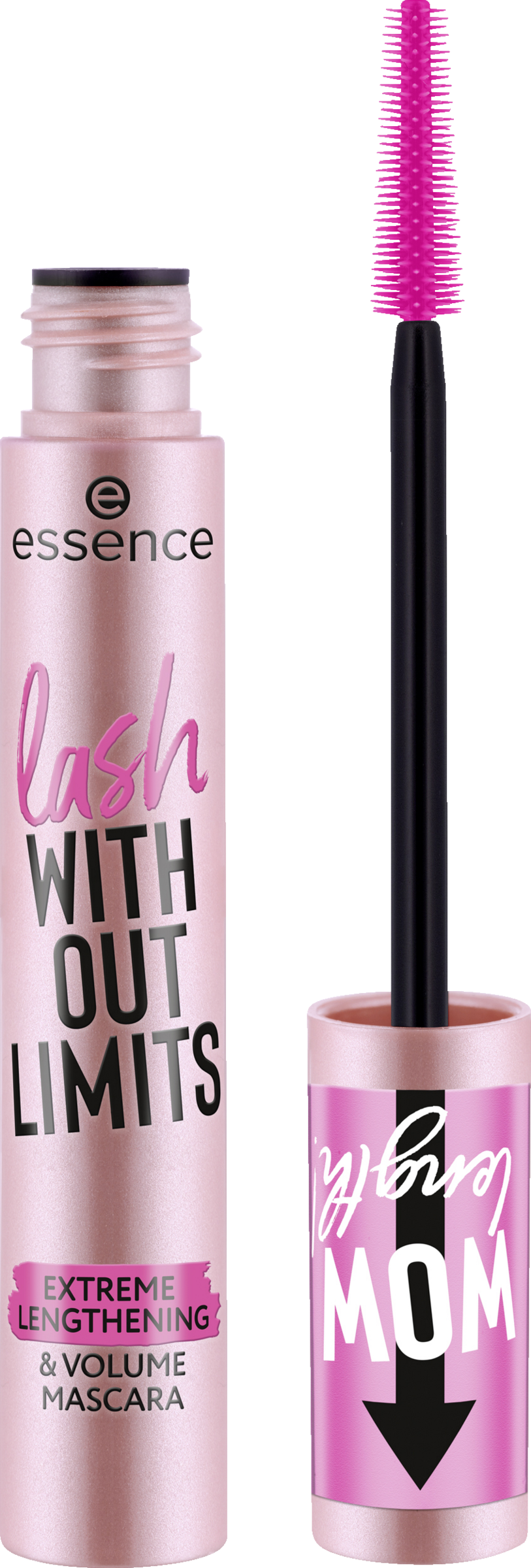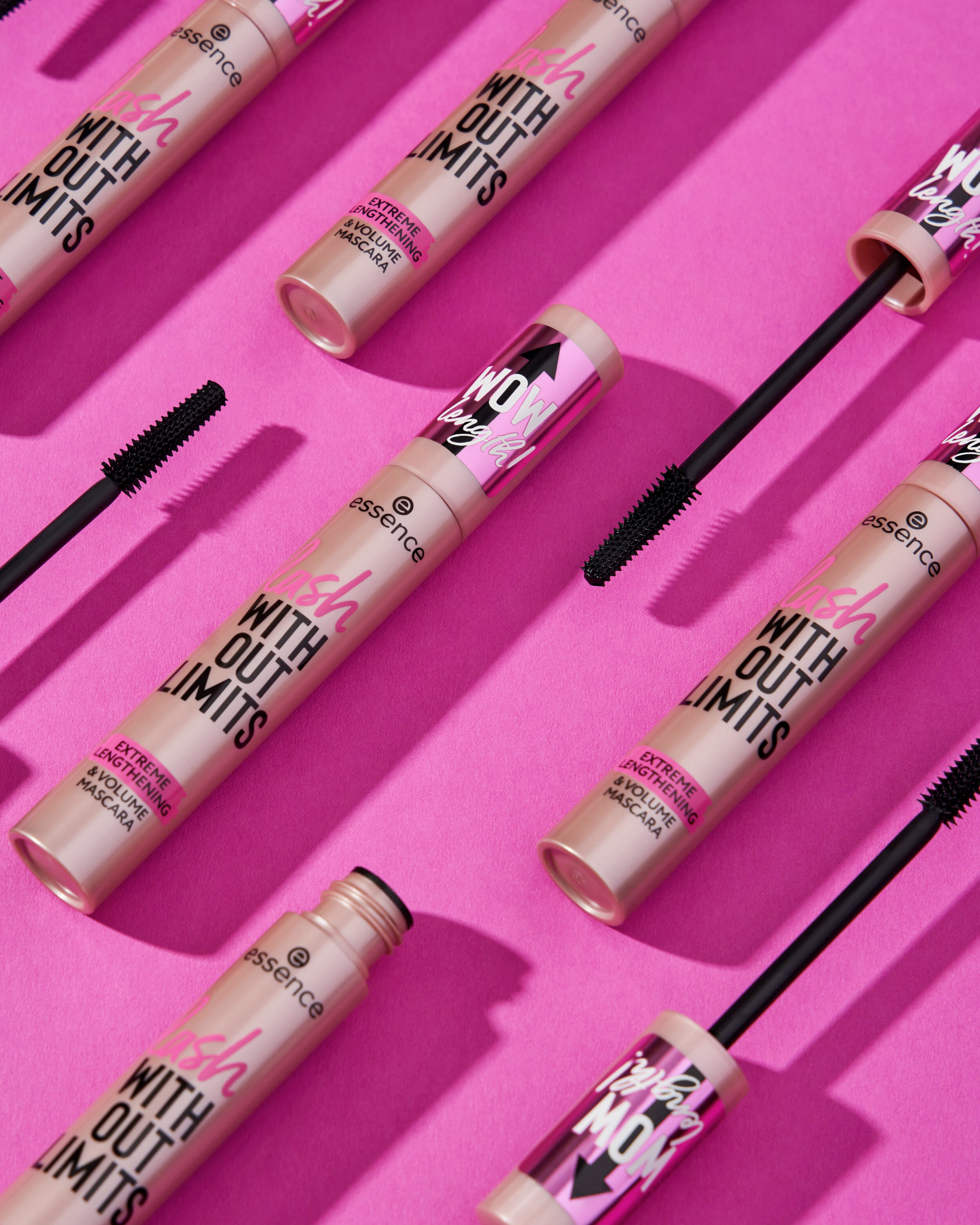 Die innovative und flexible Elastomer-Bürste der essence lash WITHOUT LIMITS EXTREME LENGTHENING & VOLUME MASCARA erreicht selbst die kürzesten Wimpern und sorgt für ultra-verlängerte und voluminöse Wimpern!