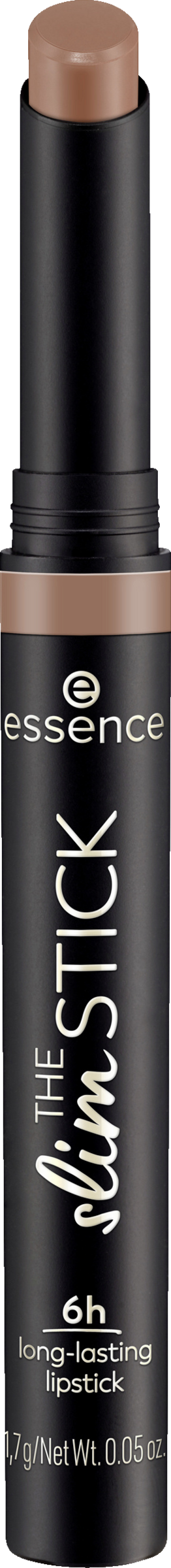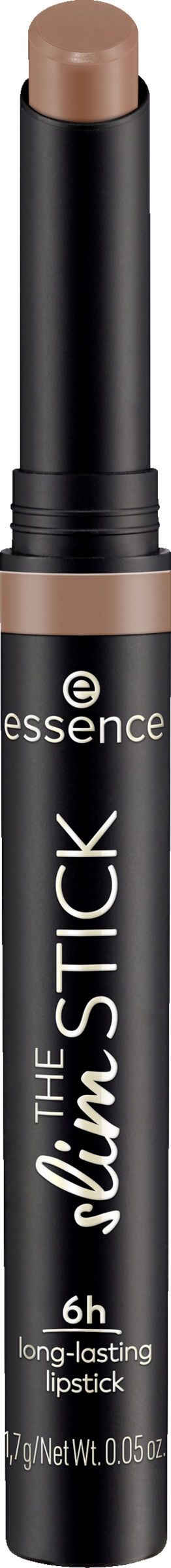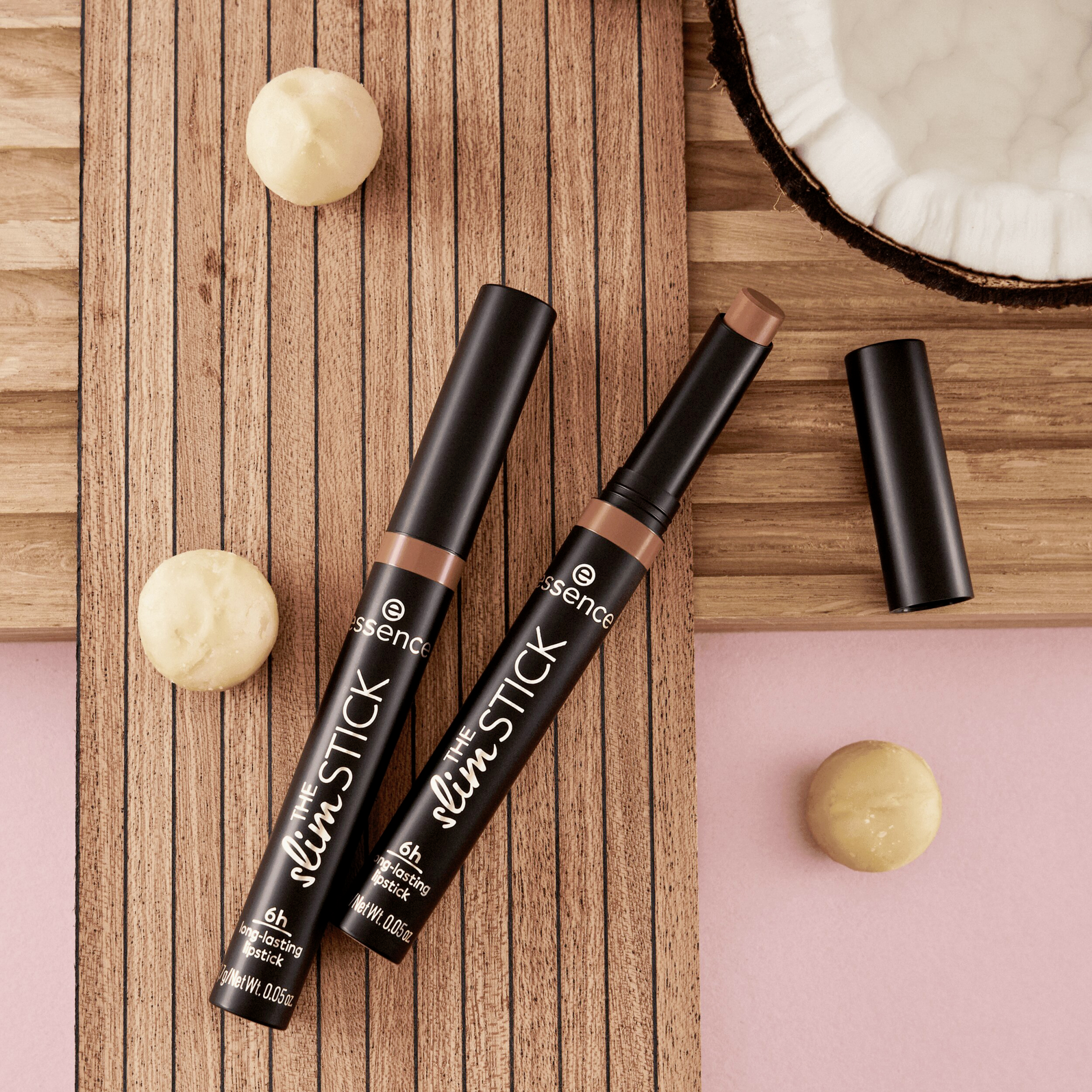 Sag „Hallo“ zum essence THE slim STICK 101 Choc-o-holic in einem hellen, warmen Nude-Ton! Der langanhaltende Lippenstift überzeugt mit seiner cremigen Textur und seinem samtig-matten Finish. Er ist super angenehm zu tragen – ganz ohne Austrocknen. Der Lippenstift hat eine lange Haltbarkeit von 6 Stunden ohne Verlaufen. Dank des schmalen Packagings ist der Lippenstift einfach und präzise aufzutragen - jederzeit und überall! Zudem pflegt der Lipstick auch gleichzeitig deine Lippen mit der nährenden Formulierung mit Jojobaöl, Macadamiaöl, Kokosnussöl und Vitamin E.