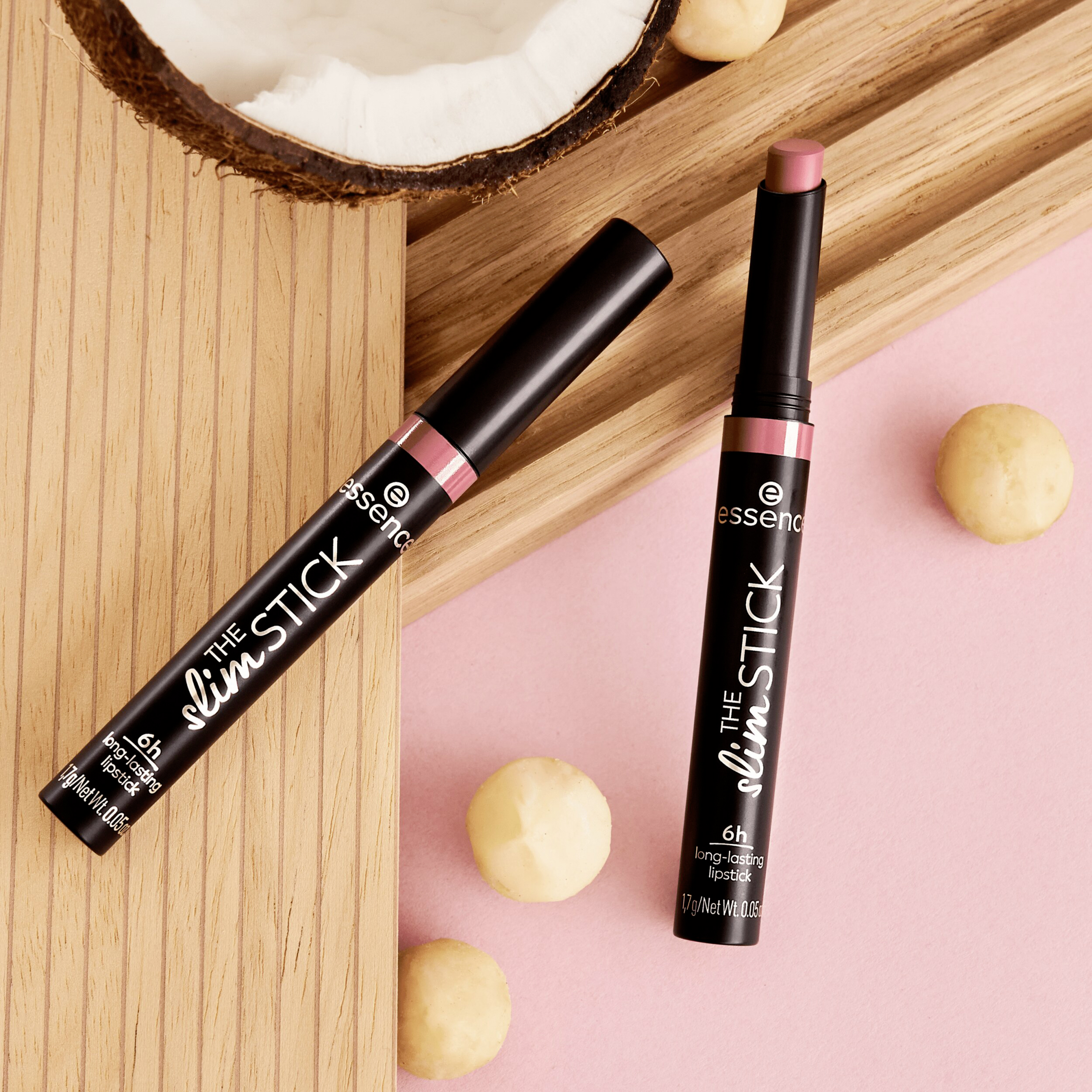 Sag „Hallo“ zum essence THE slim STICK 104 Baby Got Blush in einem zarten-weichen Pink-Farbton! Der langanhaltende Lippenstift überzeugt mit seiner cremigen Textur und seinem samtig-matten Finish. Er ist super angenehm zu tragen – ganz ohne Austrocknen. Der Lippenstift hat eine lange Haltbarkeit von 6 Stunden ohne Verlaufen. Dank des schmalen Packagings ist der Lippenstift einfach und präzise aufzutragen - jederzeit und überall! Zudem pflegt der Lipstick auch gleichzeitig deine Lippen mit der nährenden Formulierung mit Jojobaöl, Macadamiaöl, Kokosnussöl und Vitamin E.
