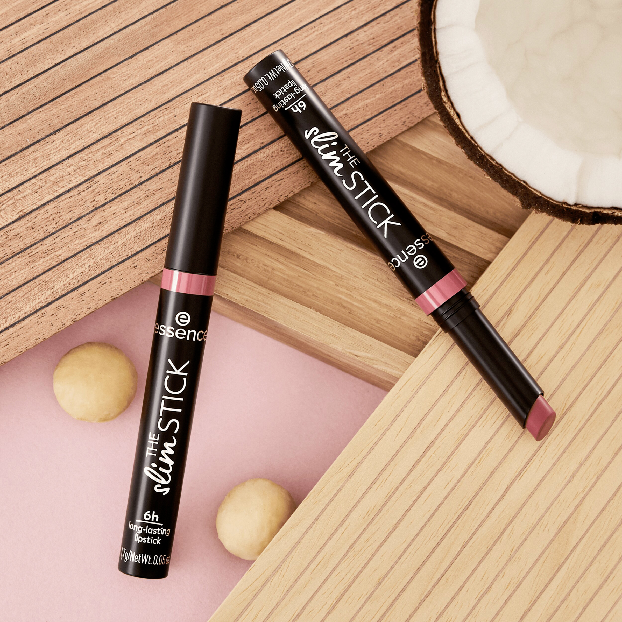 Sag „Hallo“ zum essence THE slim STICK 105 Velvet Punch in einem warmen, samtigen Farbton! Der langanhaltende Lippenstift überzeugt mit seiner cremigen Textur und seinem samtig-matten Finish. Er ist super angenehm zu tragen – ganz ohne Austrocknen. Der Lippenstift hat eine lange Haltbarkeit von 6 Stunden ohne Verlaufen. Dank des schmalen Packagings ist der Lippenstift einfach und präzise aufzutragen - jederzeit und überall! Zudem pflegt der Lipstick auch gleichzeitig deine Lippen mit der nährenden Formulierung mit Jojobaöl, Macadamiaöl, Kokosnussöl und Vitamin E.