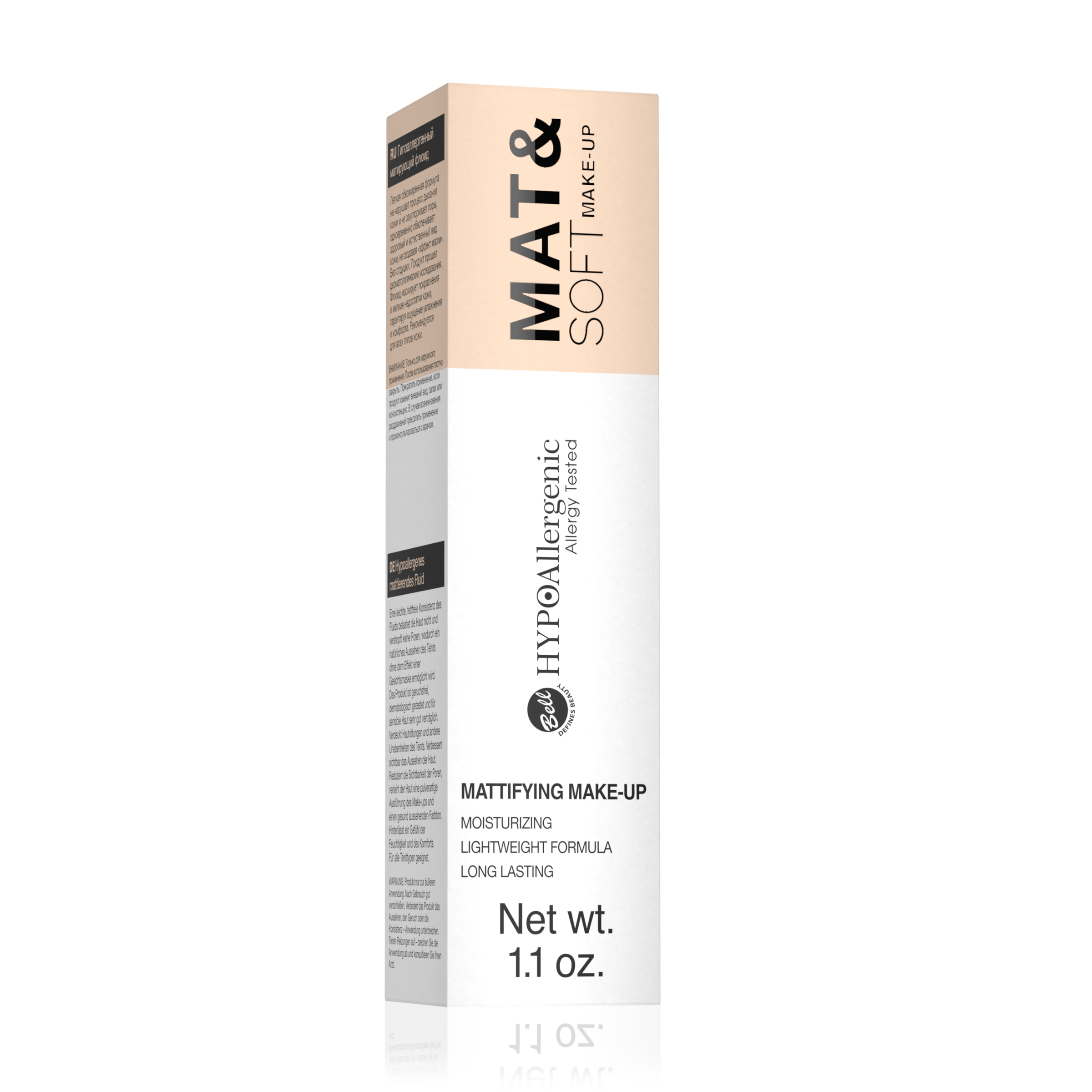 Mit dem Mat & Soft Make-up von HYPOAllergenic werden im Handumdrehen Hautrötungen und kleine Unebenheiten zuverlässig abgedeckt und das Hautbild sichtbar verbessert. Die leichte, fettfreie Konsistenz belastet die Haut nicht und verstopft keine Poren, wodurch ein natürliches Aussehen des Teints ohne Maskeneffekt ermöglicht wird. Das Produkt ist geruchsfrei, dermatologisch getestet und für sensible Haut sehr gut verträglich. Hinterlässt ein Gefühl der Feuchtigkeit und des Komforts. Für alle Hauttypen geeignet. Das Produkt wurde unter der Aufsicht von Dermatologen getestet. Eignet sich für Personen mit sensibler und zu Allergien neigender Haut.