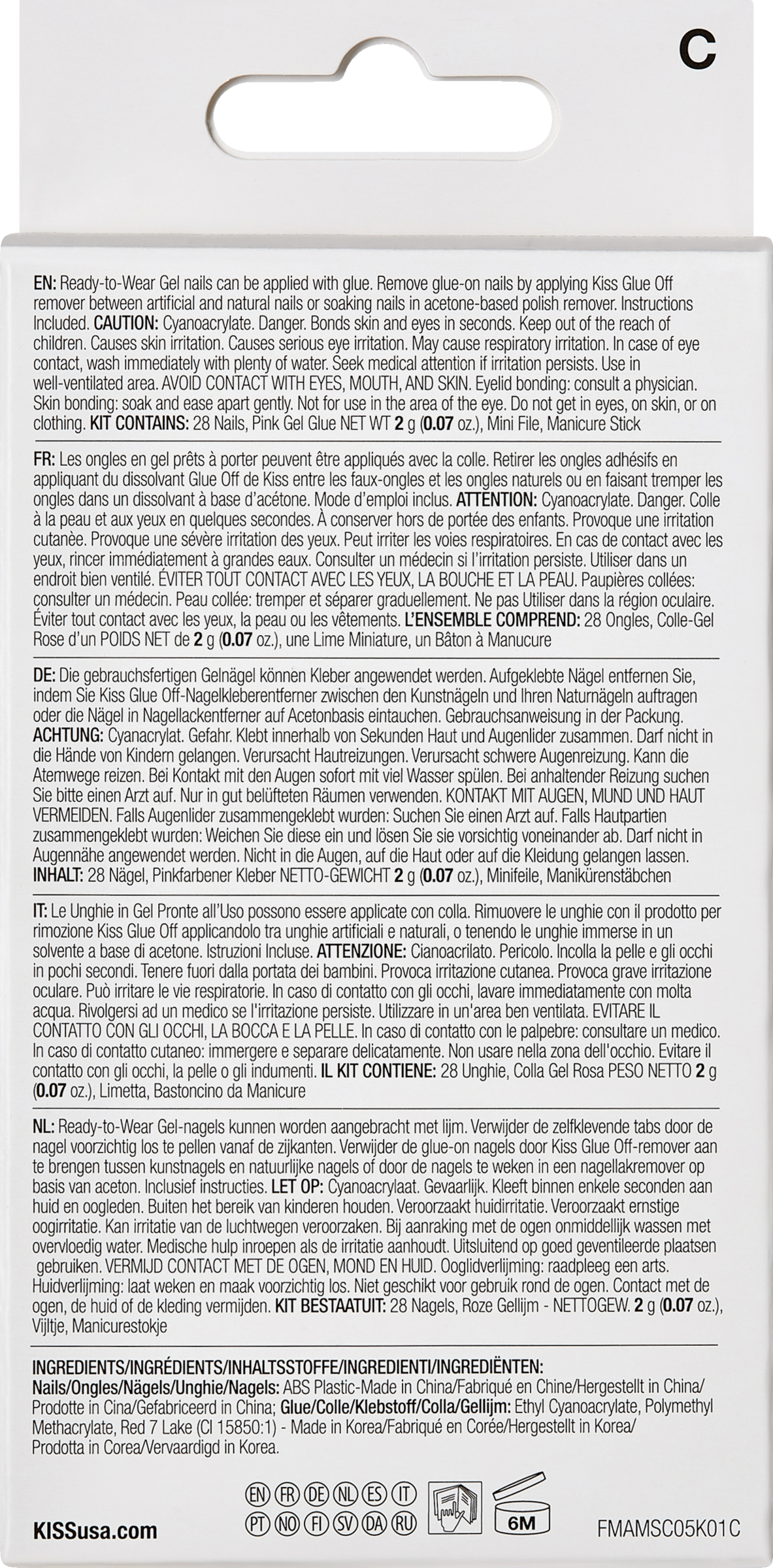 - 28 Kunstfingernäge, 1 Nagelkleber pink 2g, 1 Mini-Feile, 1 Manikürstäbchen