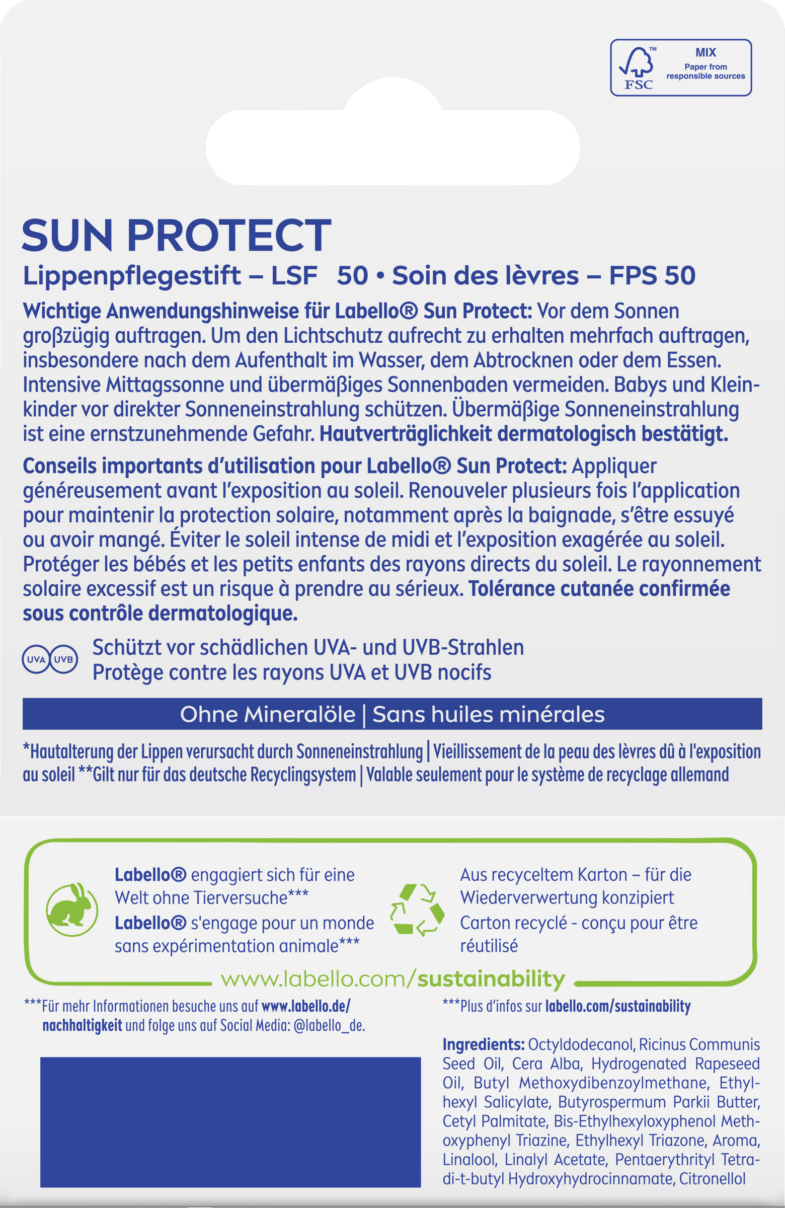 - schützt mit LSF 50 die Lippen bei längerem Aufenthalt in der Sonne
