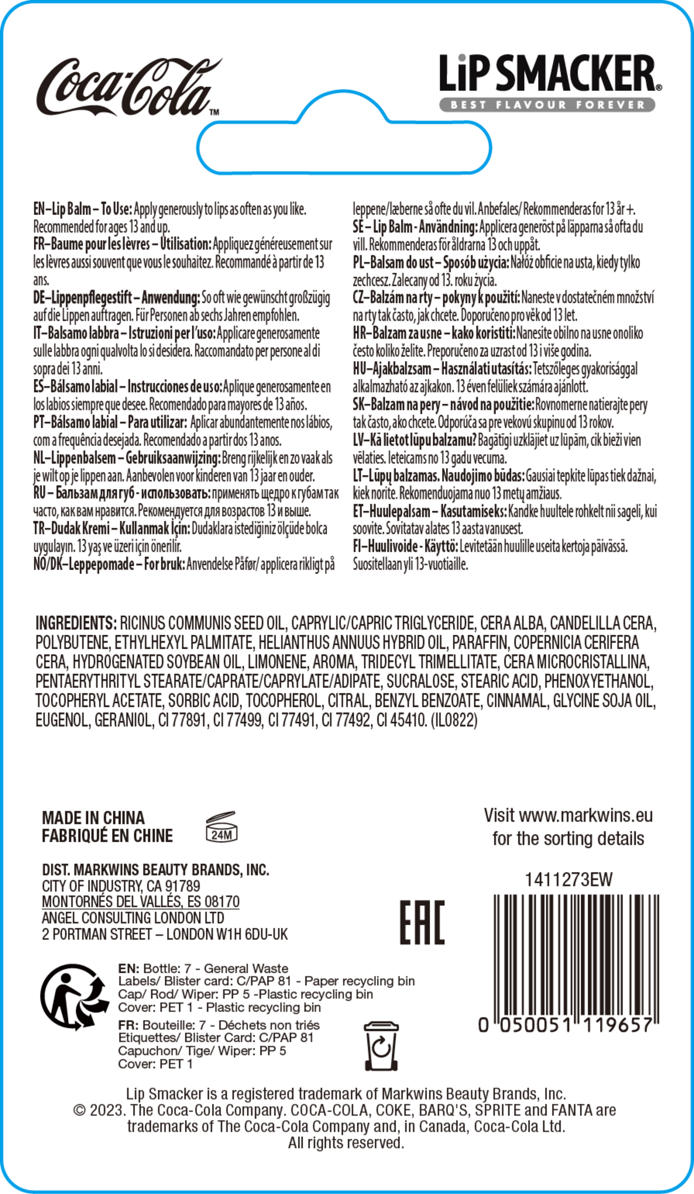 Dieser Lippenbalsam im Vintage-Look, der wie die ikonische Glasflasche von Coca-Cola gestaltet ist, lässt deine Lippen toll aussehen, sich toll anfühlen und toll schmecken! Ob als kleines Stück Americana für dich selbst oder als lustige Geschenkidee für einen Freund – teile eine Cola mit Lip Smacker!