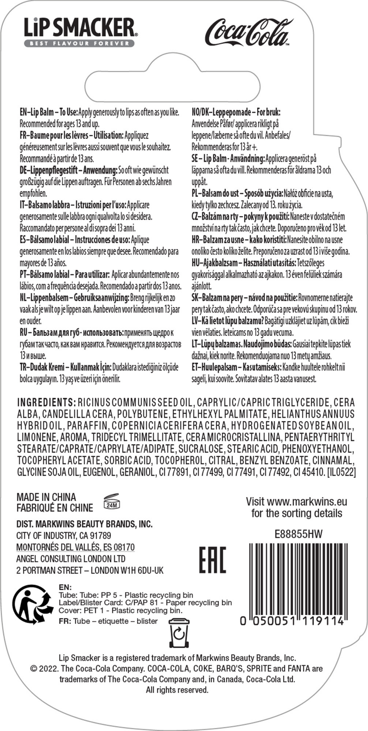Genieße den erfrischenden Geschmack von Coca-Cola in einem Lip Smacker! Die pflegenden Formeln glätten und befeuchten die Lippen mit dem authentischen und klassischen Geschmack von Coca-Cola.