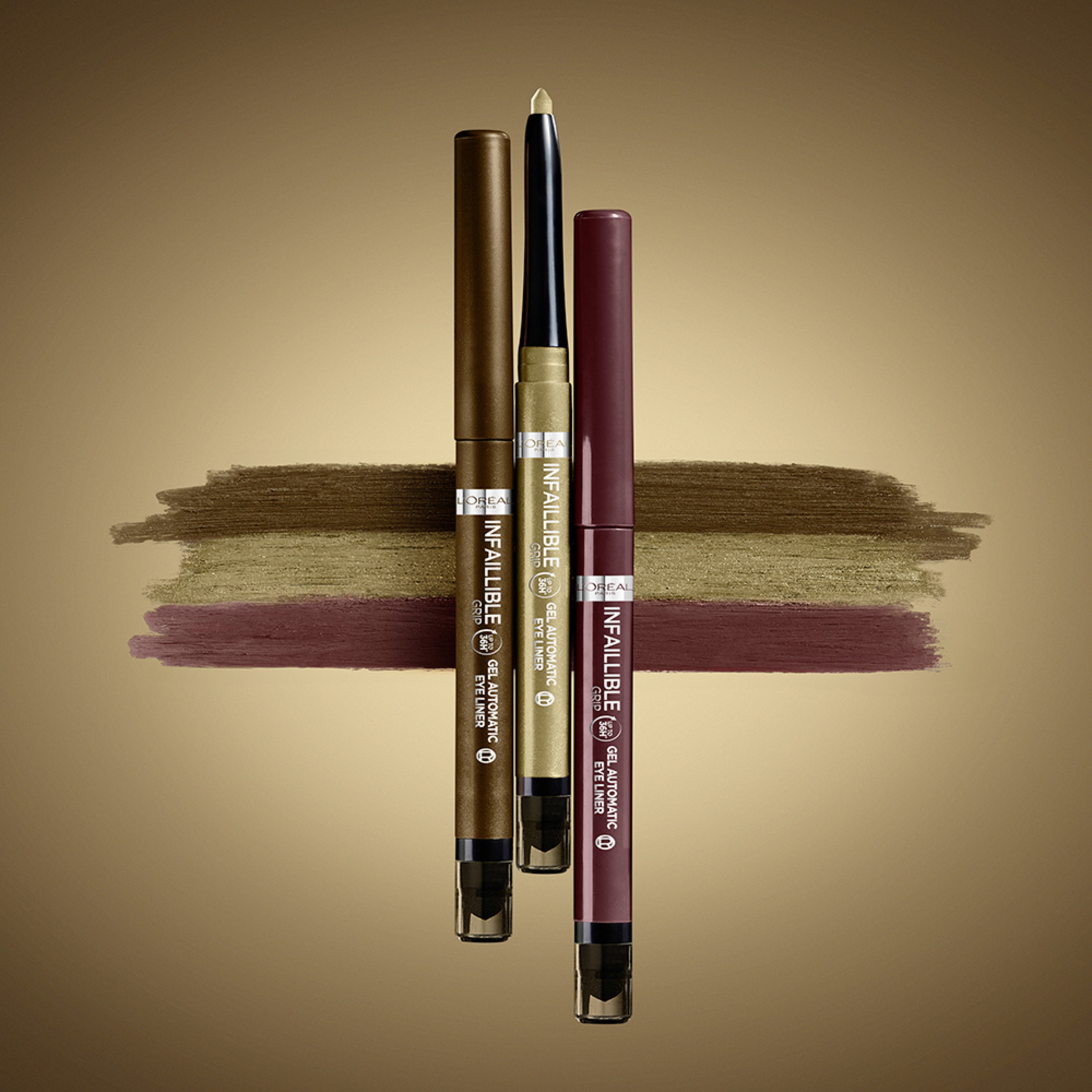 - der Infaillible Grip Gel Automatic Eyeliner für glitzernde, aufweckende Akzente in den Augenwinkeln