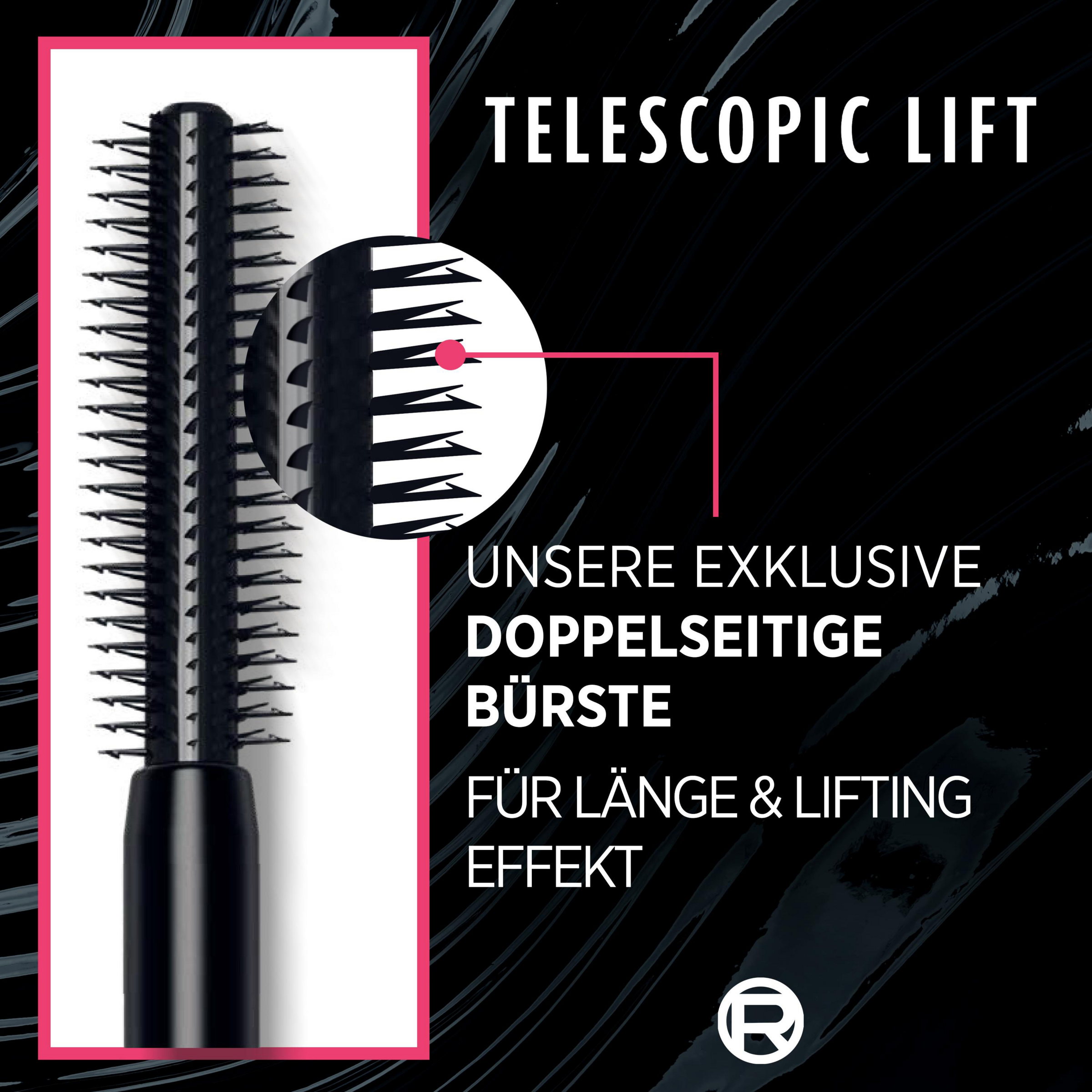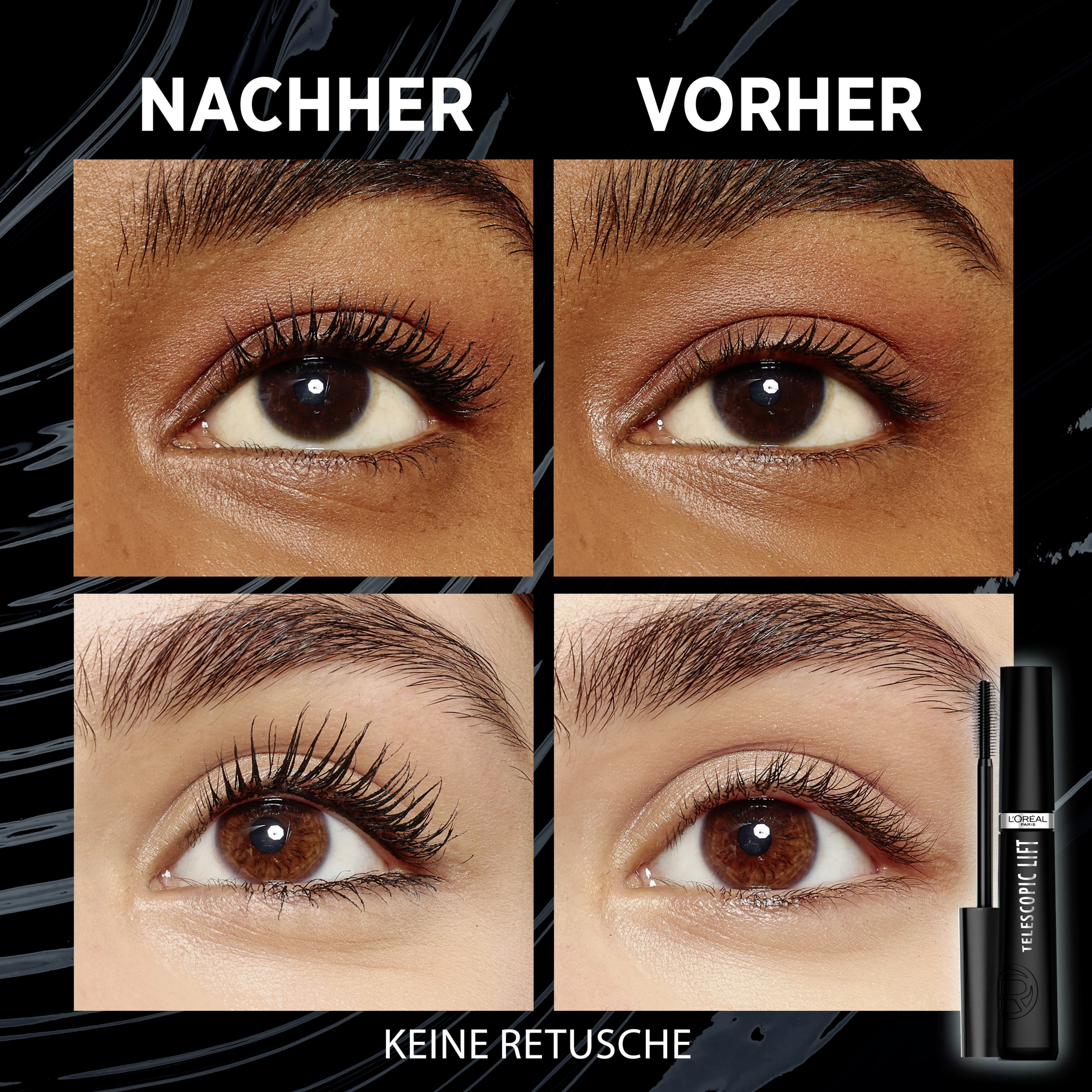 Lifte deine Wimpern auf das nächste Level! Mit der Telescopic Lift Mascara von L’Oréal Paris erhalten deine Wimpern extreme Länge und einen Lifiting-Effekt für bis zu + 5mm längere Wimpern. Die einzigartige zweiseitige Bürste ist ein exklusives Highlight für Länge und Lifting: die Borsten fangen und ummanteln jede Wimper für sofortiges Volumen, Länge und Lifting bis zu 36 Stunden. Bringe jetzt mit der Telescopic Lift dein Mascara-Game auf die nächste Stufe! Lifte deine Wimpern auf das nächste Level!