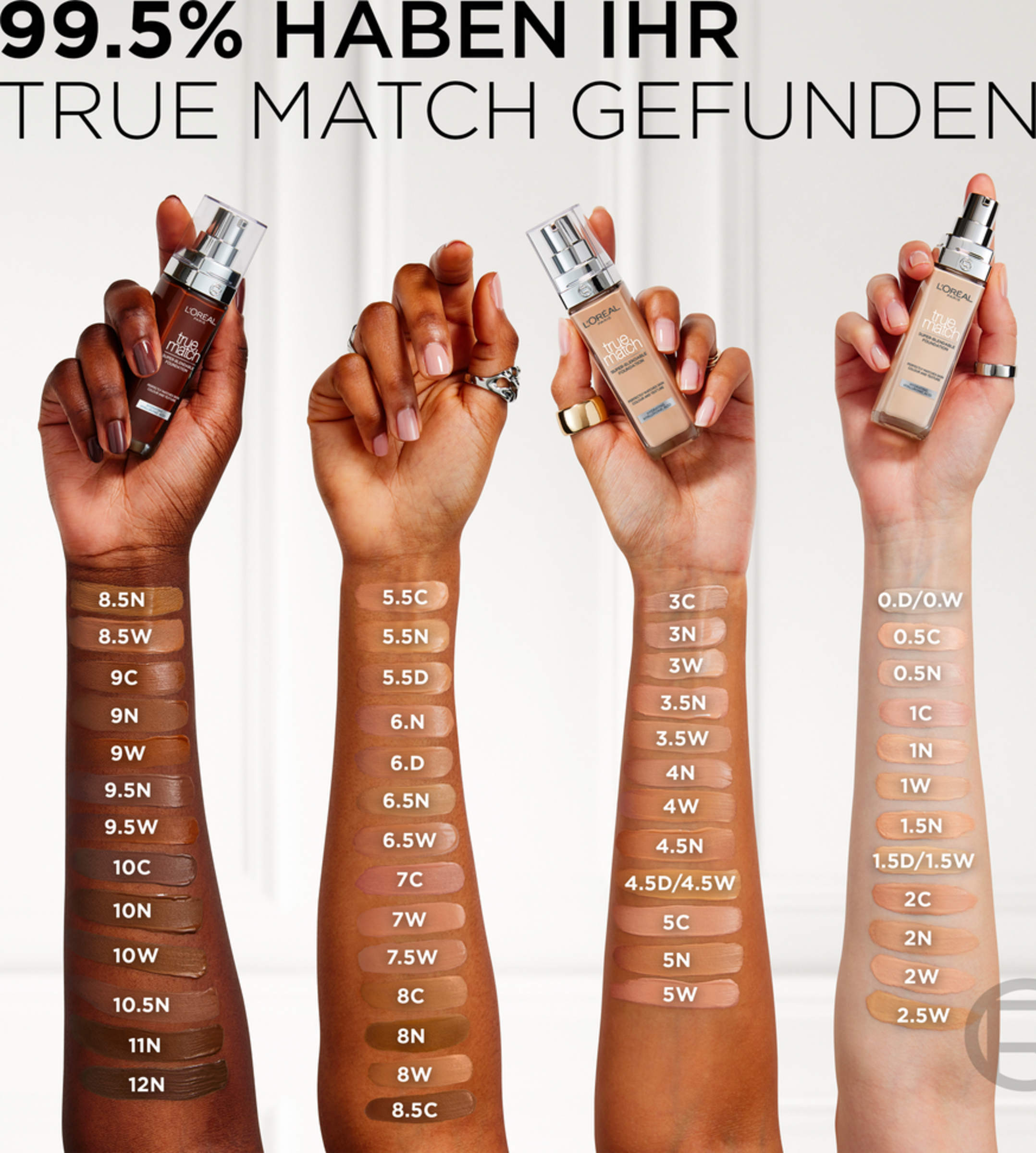 Das True Match Make-up von L‘Oréal Paris ist Pflege, Schutz und Foundation in einem. Das flüssige Make-up zaubert einen ebenmäßigen und natürlichen Teint im optimalen Farbton. Zusätzlich pflegt und schützt die Formel mit Hyaluron und Aloe Vera die Haut und verbessert das Hautbild. Die Formel ist vegan und somit ohne Inhaltsstoffe tierischen Ursprungs. Dank der innovativen Micro-Match-Technologie der Foundation verschmilzt die ultra-leichte Textur mit der Haut. Die Foundation optimiert optisch sowohl den Hautton als auch die Hautstruktur. Dasfeuchtigkeitsspendende Make-up fühlt sich wunderbar geschmeidig an und passt sich Ihrem Hautunterton an.