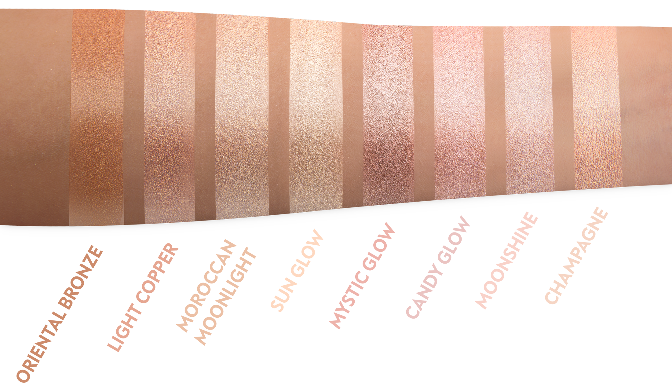 Die Prime Glow Palette – Essential Highlighter Shades Vol.1 von Luvia Cosmetics vereint gleich 8 vegane Highlighter Nuancen, die schöner nicht sein können: von kühl bis war, von gold bis rose bietet die Highlighter Palette eine Auswahl an unterschiedlich changierende Nuancen passend für helle bis dunkle Hauttypen. Die besonders cremige und samtweiche Textur überzeugt bei jedem Auftragen, während ultrafeine Schimmer-Pigmente brillant das Licht reflektieren – und samt verführerischem Rosenduft langanhaltend frische Farbergebnisse versprechen.
