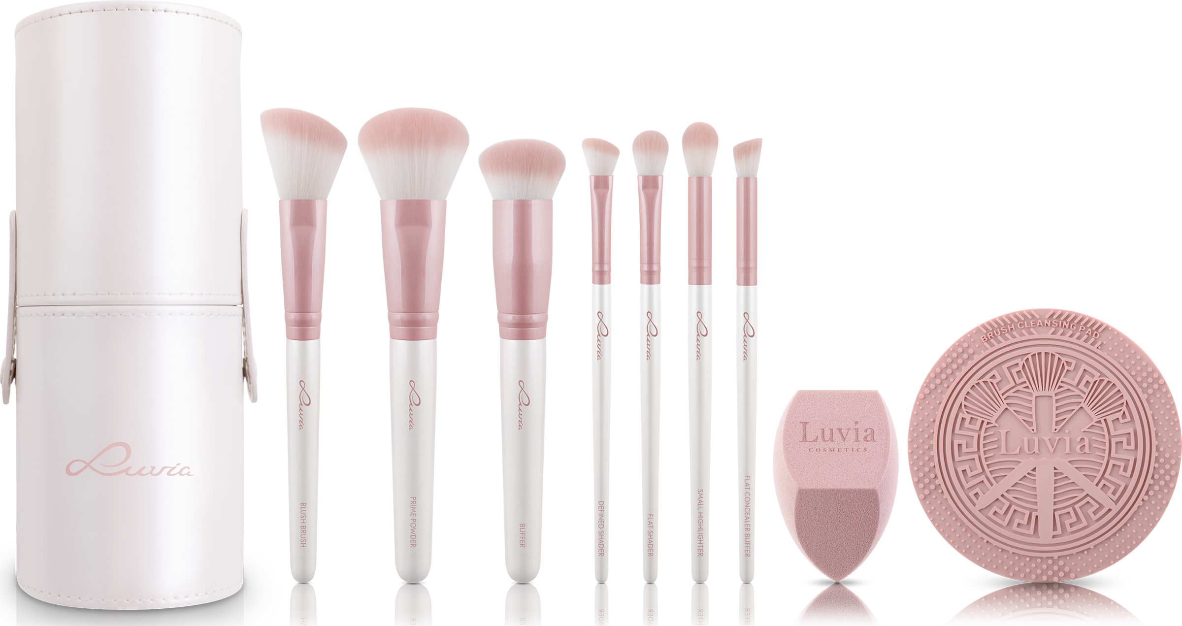 Jeder Pinsel bezaubert durch einen eleganten Griff in Perlmuttweiß und glanzvolle Zwingen in klassischem Altrosa. Der verschließbare Pinselhalter bewahrt deine Beauty-Helfer sicher auf und ist ein stilvoller Eyecatcher für unterwegs.