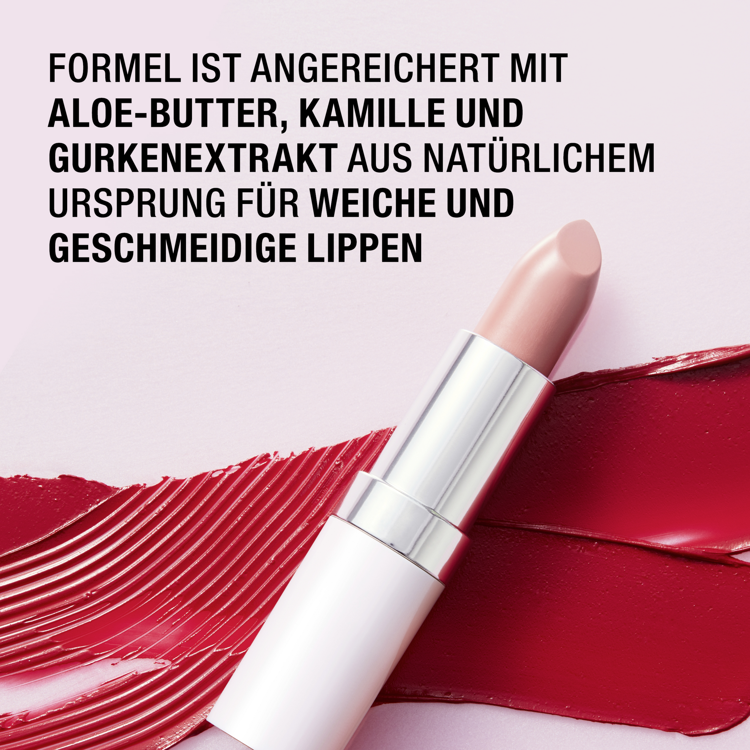 Einer für alles und alles in einem! Der Manhattan Lasting Perfection Satin Lipstick ist dein ultimativer Lippenstift für intensive Farbe und Pflege. Mit nur einem Auftrag verleiht er dir intensive, hochpigmentierte Lippenfarbe mit seidigem Finish. Seine ultra-cremige Textur gleitet schwerelos über deine Lippen und lässt sich perfekt verteilen. Dank der pflegenden Formel mit Aloe-Butter, Kamillen- und Gurkenextrakt spendet er deinen Lippen einen sofortigen Feuchtigkeitsschub, der den ganzen Tag anhält – kein Abbröckeln oder Aufreißen der Farbe. Wähle aus vielen leuchtenden Nuancen, die deinen Kussmund perfekt in Szene setzen. Der Lasting Perfection Satin Lipstick ist clean und vegan und frei von Parabenen und Mineralölen.