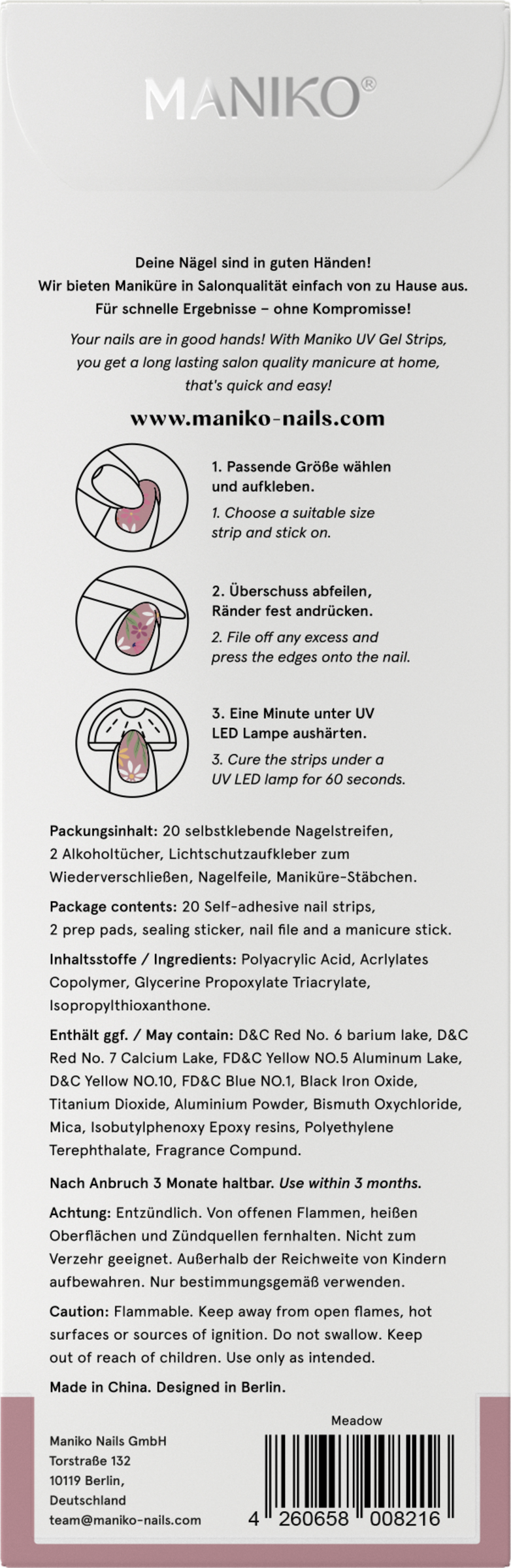 Maniko Nails® bietet dank der ausgeklügelten UV Gel Strip Technologie Gel-Maniküre in Studioqualität schnell und unkompliziert. Einfach aufkleben, abfeilen, aushärten.