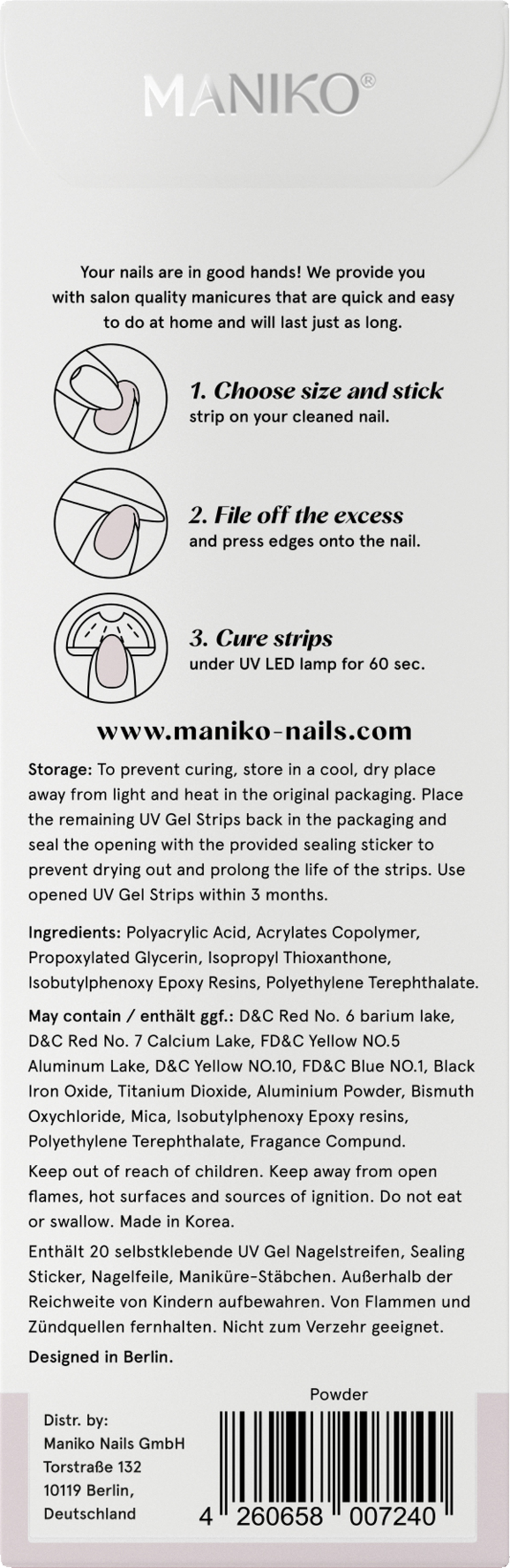 Maniko Nails® bieten eine echte Alternative zum Nagelsalon, einfach von zu Hause aus. Dank der ausgeklügelten UV Gel Strip Technologie gelingt Gel-Maniküre in Studioqualität schnell und unkompliziert. Einfach aufkleben, abfeilen, aushärten und die Welt erobern.