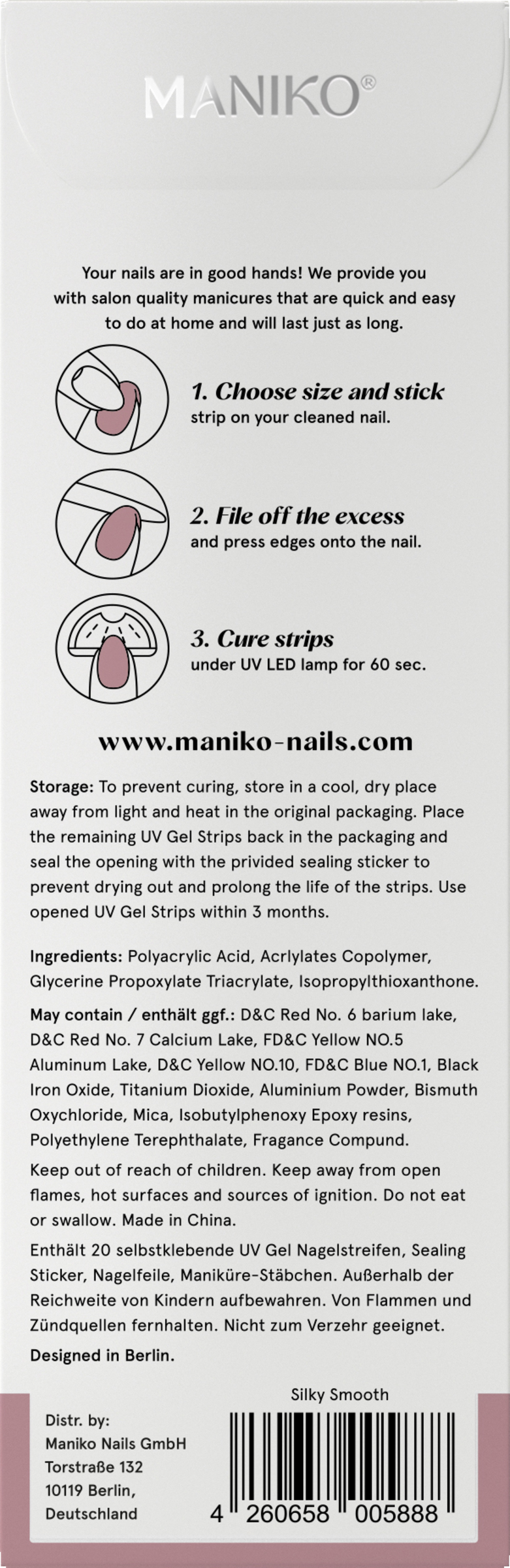 Maniko Nails® bieten eine echte Alternative zum Nagelsalon, einfach von zu Hause aus. Dank der ausgeklügelten UV Gel Strip Technologie gelingt Gel-Maniküre in Studioqualität schnell und unkompliziert. Einfach aufkleben, abfeilen, aushärten und die Welt erobern.
