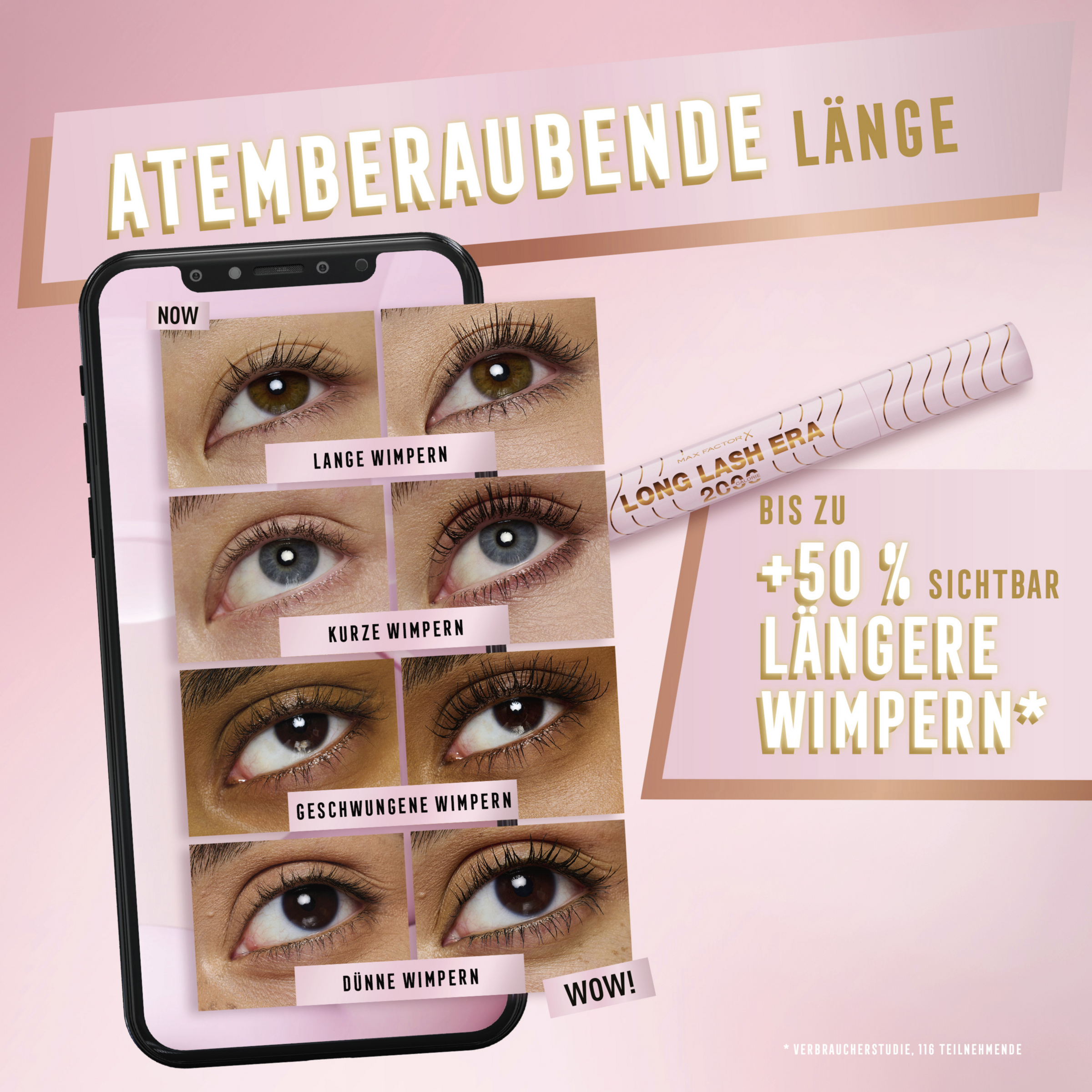 - atemberaubende Länge: Die Max Factor 2000 Calorie Long Lash Era Mascara zaubert sichtbar bis zu +50% längere Wimpern