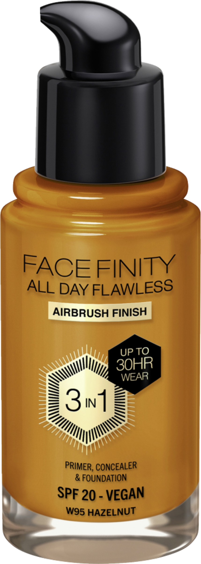 Die vegane Formel mit perfekter Deckkraft kaschiert Rötungen und Unregelmäßigkeiten. Dieses weichzeichnende Make-up in Farbe W95 Hazelnut mit Airbrush-Finish ist wetterfest, wasserfest, hitzebeständig und feuchtigkeitsbeständig. Die Flexi-Hold-Technologie passt sich jeder Haut an und sorgt für ein natürlich aussehendes, langanhaltendes Finish, das nicht abfärbt.