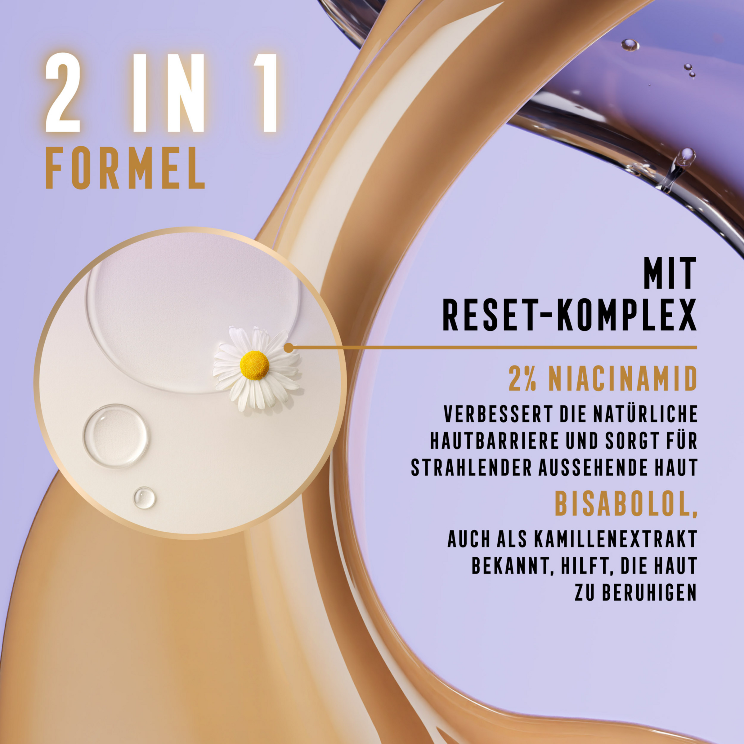- Dank des nährenden Reset-Komplexes mit 2% Niacinamide und Bisabolol wirkt die Haut sichtbar strahlender und gesünder.