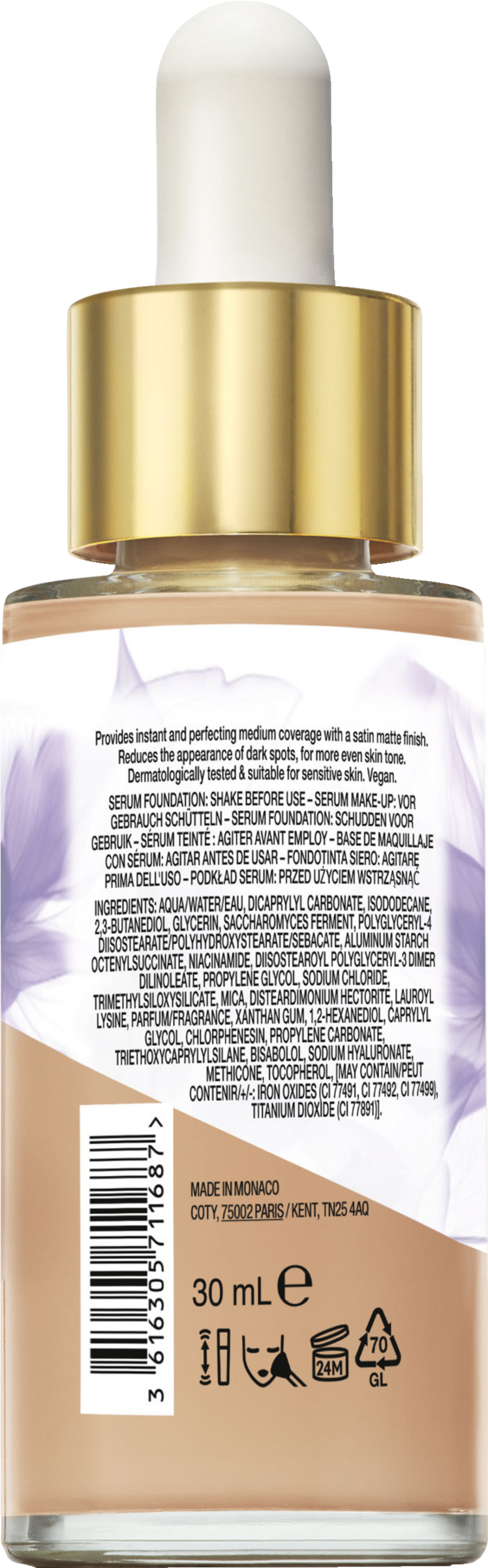 AQUA/WATER/EAU, DICAPRYLYL CARBONATE, ISODODECANE, 2,3-BUTANEDIOL, GLYCERIN, SACCHAROMYCES FERMENT, POLYGLYCERYL-4 DIISOSTEARATE/POLYHYDROXYSTEARATE/SEBACATE, ALUMINUM STARCH OCTENYLSUCCINATE, NIACINAMIDE, DIISOSTEAROYL POLYGLYCERYL-3 DIMER DILINOLEATE, PROPYLENE GLYCOL, SODIUM CHLORIDE, TRIMETHYLSILOXYSILICATE, MICA, DISTEARDIMONIUM HECTORITE, LAUROYL LYSINE, PARFUM/FRAGRANCE, XANTHAN GUM, 1,2-HEXANEDIOL, CAPRYLYL GLYCOL, CHLORPHENESIN, PROPYLENE CARBONATE, TRIETHOXYCAPRYLYLSILANE, BISABOLOL, SODIUM HYALURONATE, METHICONE, TOCOPHEROL, [MAY CONTAIN/PEUT CONTENIR/+/-: IRON OXIDES (CI 77491, CI 77492, CI 77499), TITANIUM DIOXIDE (CI 77891)].