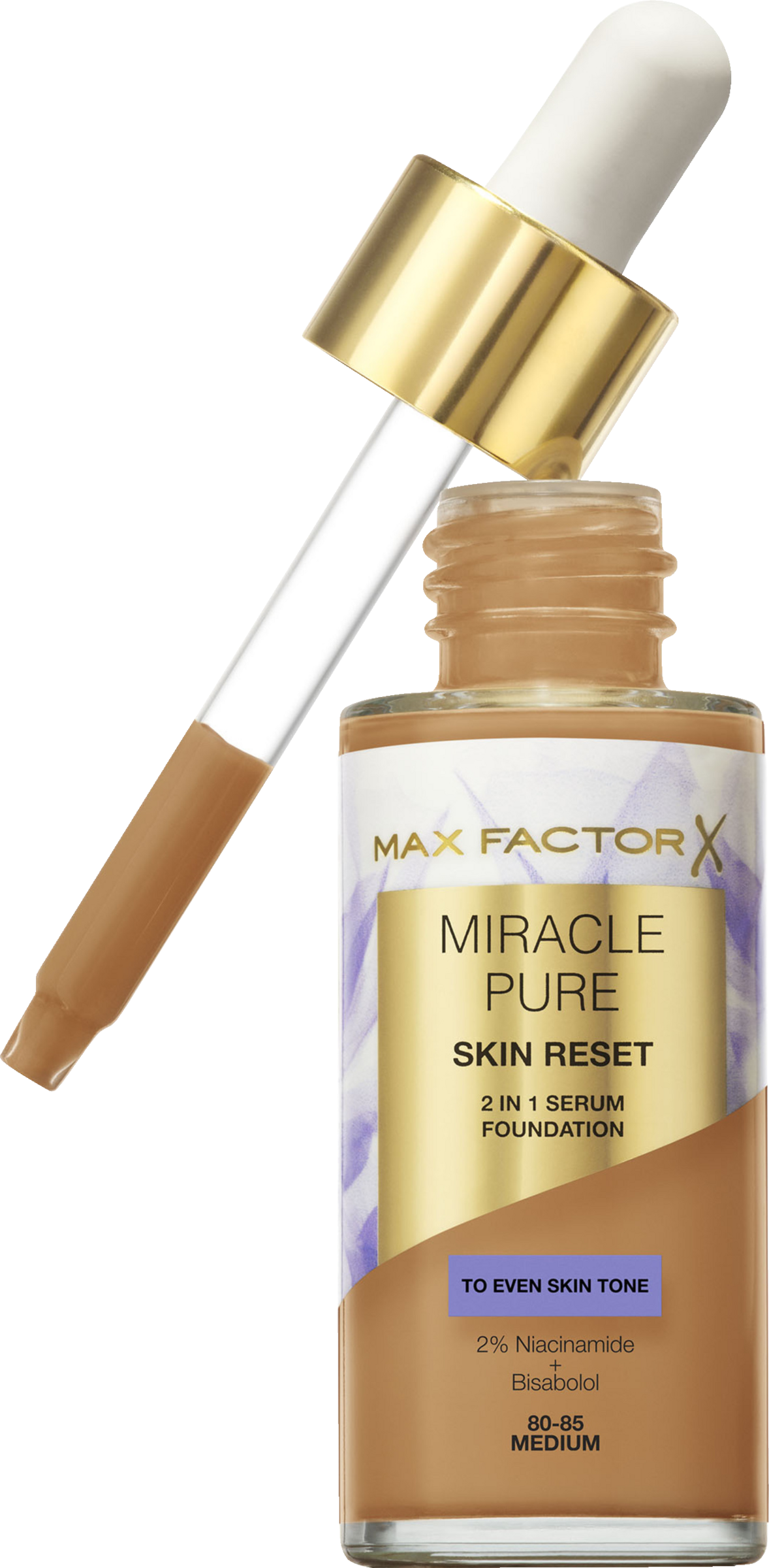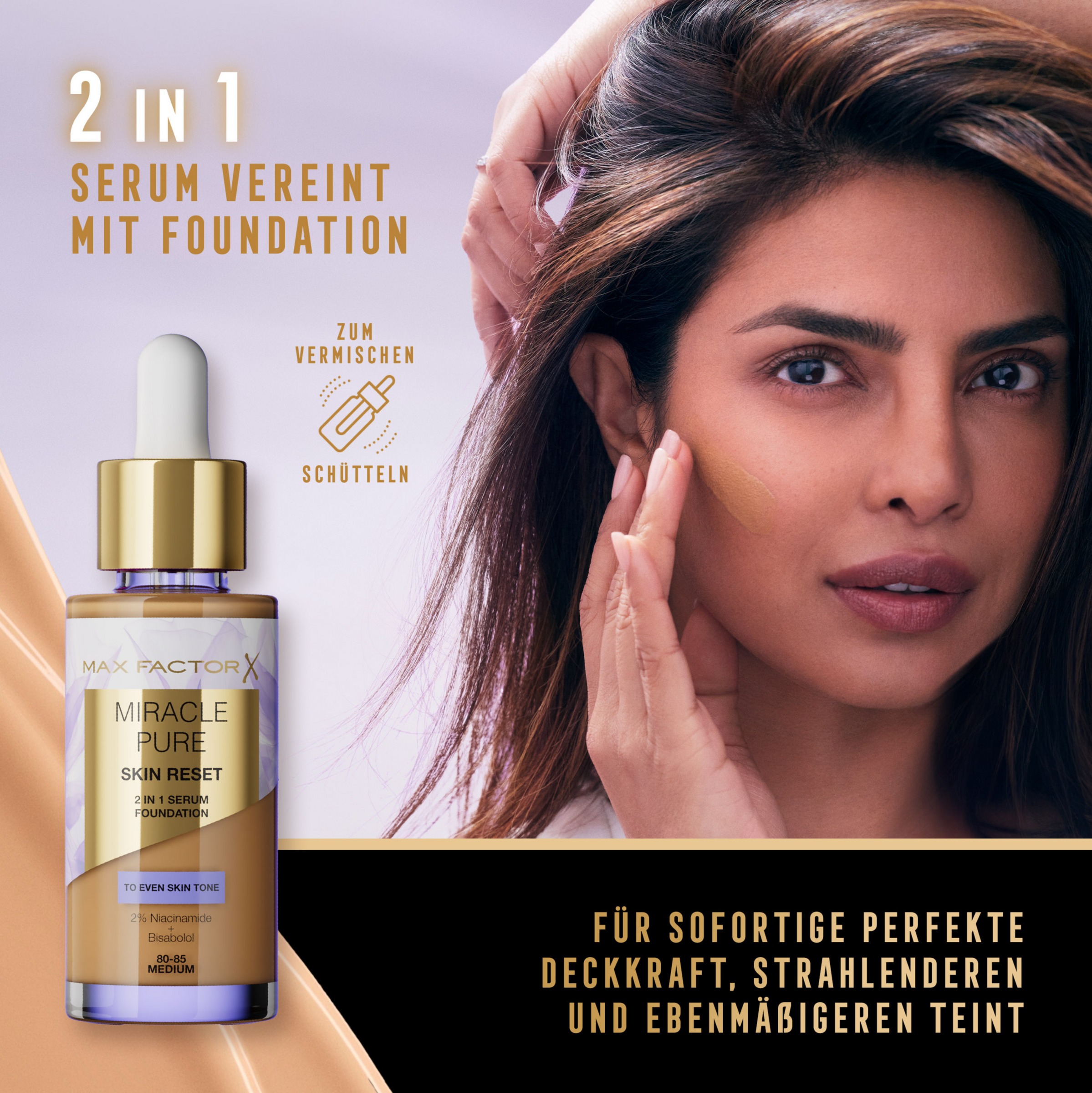 - Max Factor Miracle Pure Skin Reset Foundation: 2-in-1-Serumformel und flüssige Foundation mit ausgleichender Deckkraft, die für ein gleichmäßigeres Hautbild sorgt.