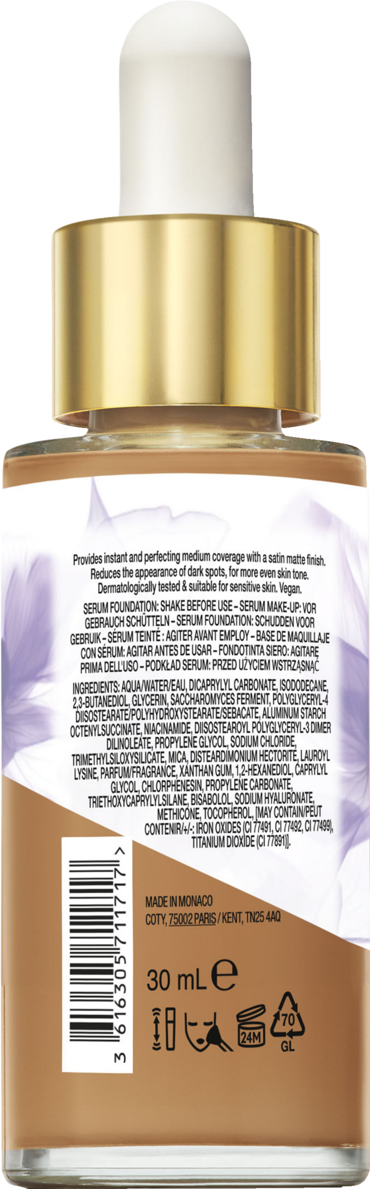 AQUA/WATER/EAU, DICAPRYLYL CARBONATE, ISODODECANE, 2,3-BUTANEDIOL, GLYCERIN, SACCHAROMYCES FERMENT, POLYGLYCERYL-4 DIISOSTEARATE/POLYHYDROXYSTEARATE/SEBACATE, ALUMINUM STARCH OCTENYLSUCCINATE, NIACINAMIDE, DIISOSTEAROYL POLYGLYCERYL-3 DIMER DILINOLEATE, PROPYLENE GLYCOL, SODIUM CHLORIDE, TRIMETHYLSILOXYSILICATE, MICA, DISTEARDIMONIUM HECTORITE, LAUROYL LYSINE, PARFUM/FRAGRANCE, XANTHAN GUM, 1,2-HEXANEDIOL, CAPRYLYL GLYCOL, CHLORPHENESIN, PROPYLENE CARBONATE, TRIETHOXYCAPRYLYLSILANE, BISABOLOL, SODIUM HYALURONATE, METHICONE, TOCOPHEROL, [MAY CONTAIN/PEUT CONTENIR/+/-: IRON OXIDES (CI 77491, CI 77492, CI 77499), TITANIUM DIOXIDE (CI 77891)].