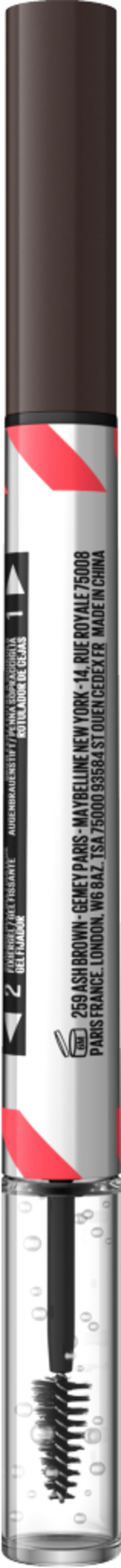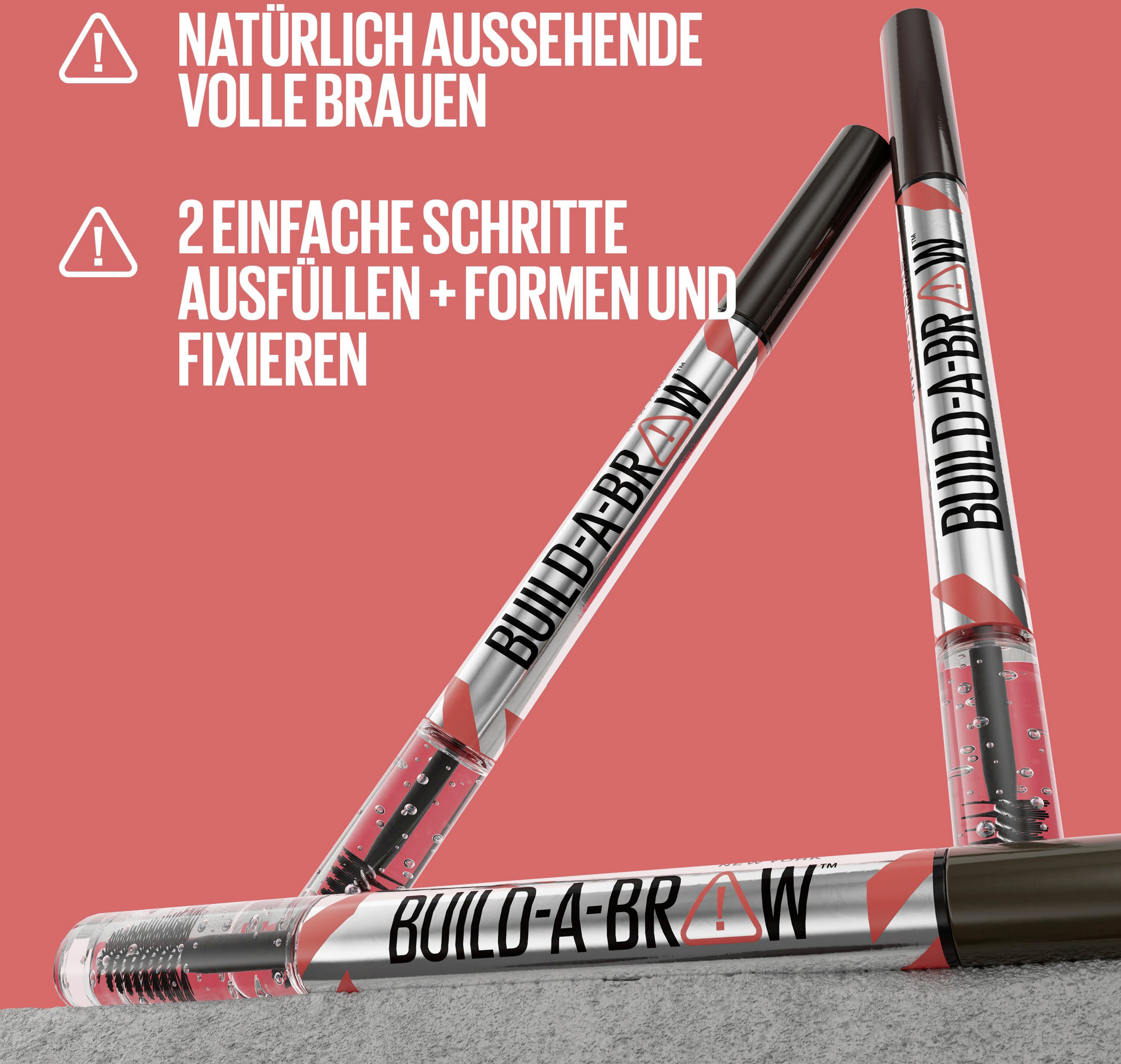 Der Build-A-Brow Augenbrauenstift in der Farbe Ash Brown von Maybelline New York verleiht natürlich wirkende und vollere Augenbrauen in nur 2 Schritten. Mit dem Augenbrauenstift können ultra präzise Striche entlang jeder Augenbraue gezogen, in gewünschter Intensität eingefärbt und definiert werden. Danach werden die Augenbrauen mit dem klaren Gel auf der anderen Seite des Augenbrauenstifts geformt, versiegelt und als Finish in beliebiger Form mit dem inkludierten Bürstchen fixiert. Dank des Augenbrauenstifts von Maybelline New York gelingt eine besonders akkurate Härchenzeichnung, die den natürlichen Look unterstreicht. Die vegane Fomel ist schweißresistent und sorgt für bis zu 24 Stunden Halt – ohne zu verwischen.