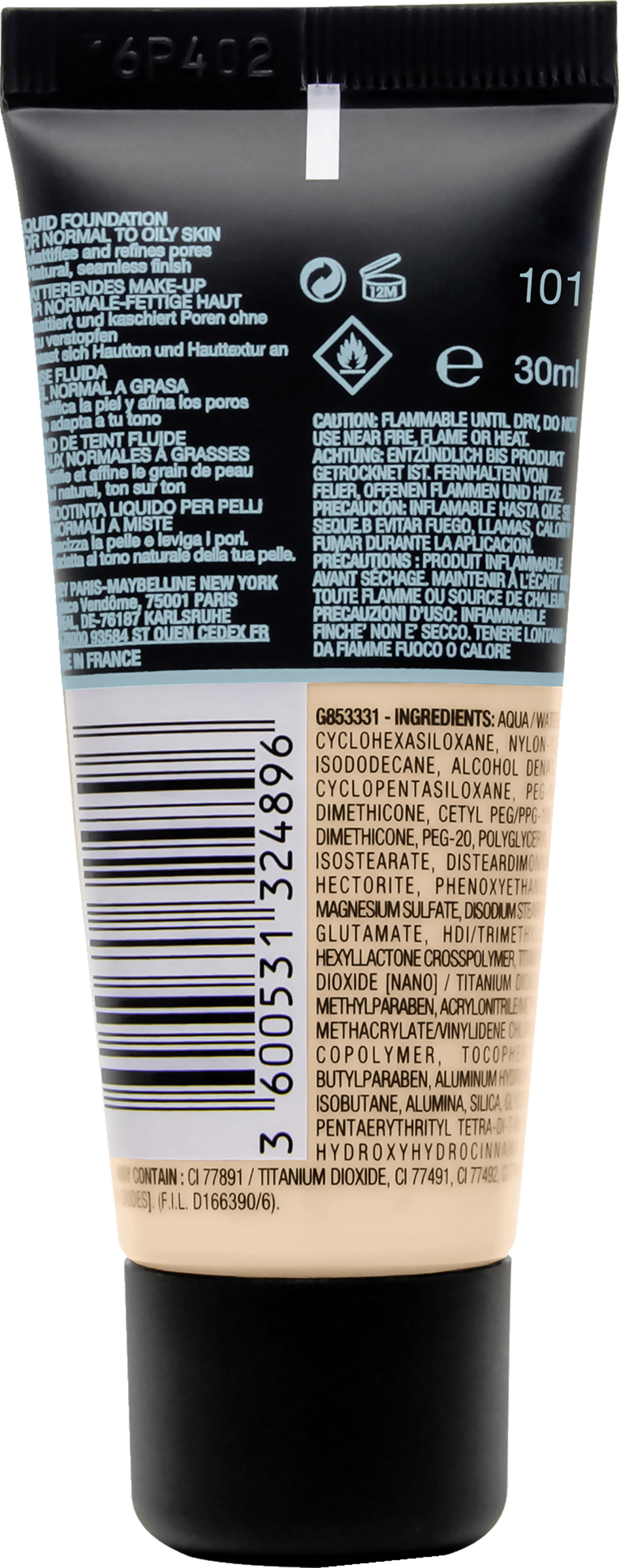 Aqua / Water Cyclohexasiloxane Nylon-12 Isododecane Alcohol Denat. Cyclopentasiloxane Peg-10 Dimethicone Cetyl Peg/Ppg-10/1 Dimethicone Peg-20 Polyglyceryl-4 Isostearate Disteardimonium Hectorite Phenoxyethanol Magnesium Sulfate Disodium Stearoyl Glutamate Hdi/Trimethylol Hexyllactone Crosspolymer Titanium Dioxide [Nano] / Titanium Dioxide Methylparaben Acrylonitrile/Methyl Methacrylate/Vinylidene Chloride Copolymer Tocopherol Butylparaben Aluminum Hydroxide Isobutane Alumina Silica Glycerin Pentaerythrityl Tetra-Di-T-Butyl Hydroxyhydrocinnamate [+/- May Contain CI 77891 / Titanium Dioxide CI 77491, CI 77492, CI 77499 / Iron Oxides ]