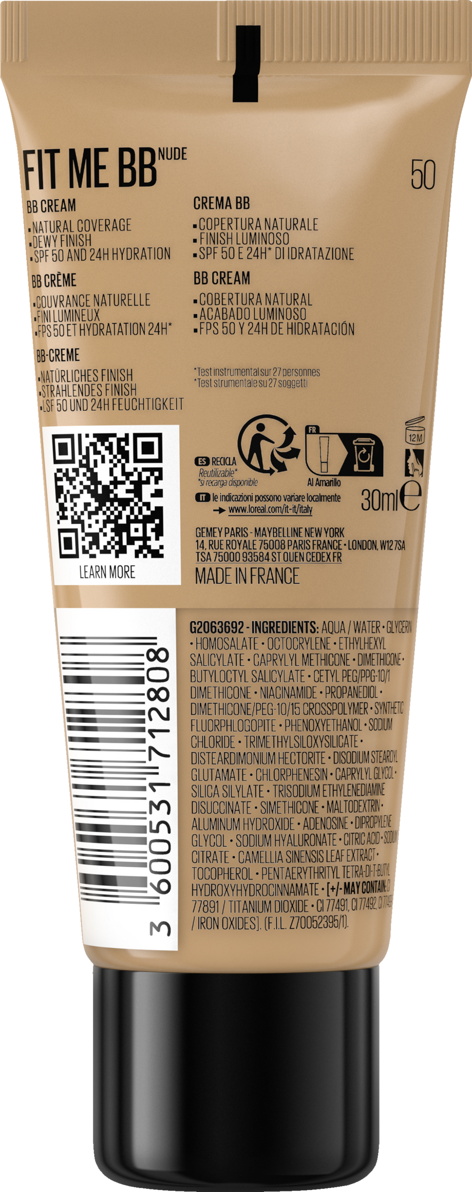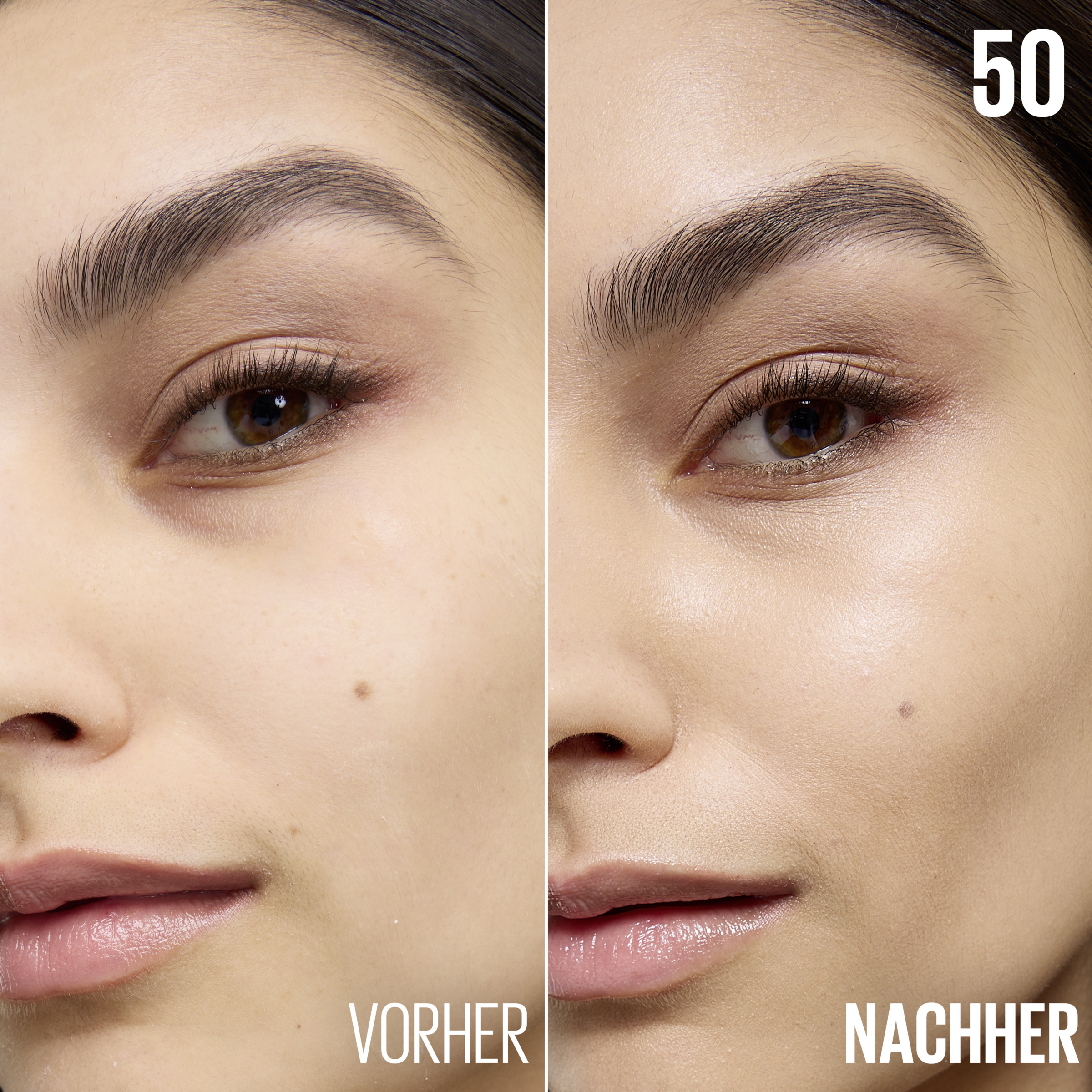 Für ein sofort und langfristig verbessertes Hautbild sorgt die Fit me Nude BB Cream 50 von Maybelline New York. Die hautperfektionierende BB Cream verleiht einen frischen und strahlenden Teint und spendet dank der Formel mit 90 % pflegenden Inhaltsstoffen der Haut 24 Stunden lang Feuchtigkeit. Gleichzeitig bietet sie durch den integrierten Lichtschutzfaktor 50 einen hohen Schutz vor den Auswirkungen der UV-Strahlung. Darüber hinaus fühlt sie sich angenehm leicht auf der Haut an und sorgt den ganzen Tag hindurch für einen makellosen Halt. Die Nuance der BB Cream passt sich zudem dem Hautton an, um so eine leichte und natürlich aussehende Abdeckung zu schaffen.