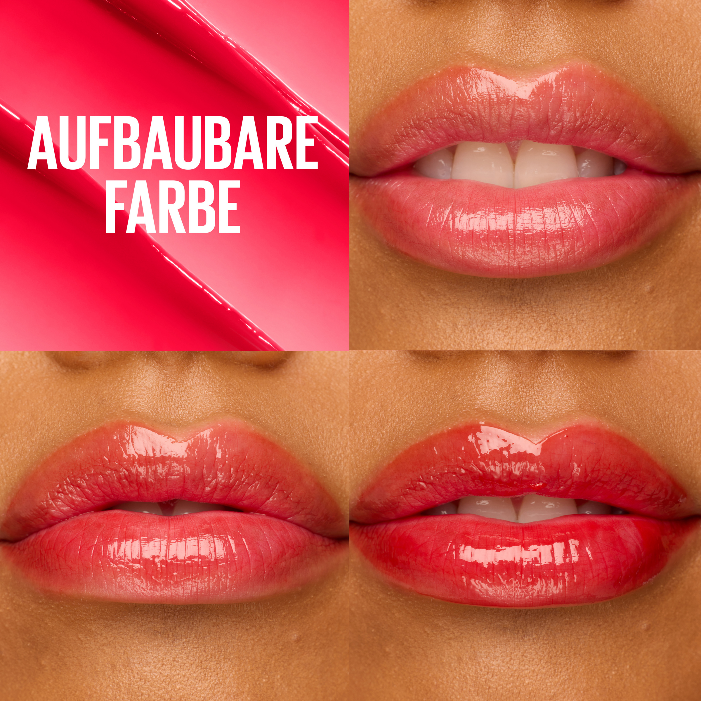- aufbaubare Shades für dezent oder auffällig glasierte Lippen