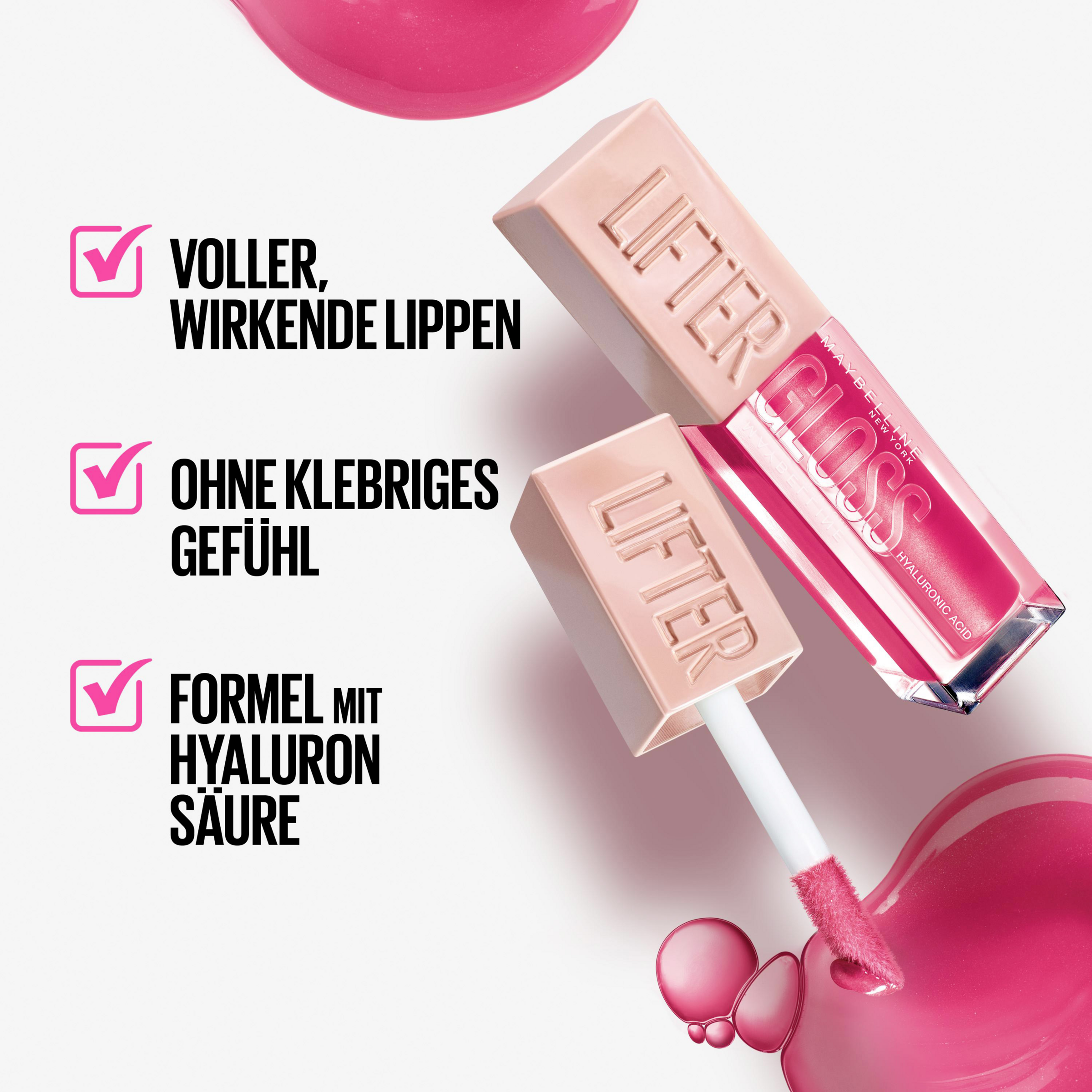 Bereit für voller aussehende Lippen ohne viel Aufwand? Der Maybelline New York Lifter Gloss verleiht den Lippen Feuchtigkeit und Glanz für einen hydratisierten und vollen Look. Durch die Lipgloss-Formel mit Hyaluronsäure wirkt die Lippenoberfläche geglättet und die Lippenkontur wird mit schönem Glanz betont für gepflegte und voller aussehende Lippen. Die Formel mit Hyaluronsäure klebt nicht und hinterlässt ein leichtes Gefühl auf den Lippen. Dank des XL-Applikators und praktischem Format lässt sich das Gloss ganz easy und schnell auftragen. Der Lifter Gloss von Maybelline verhilft in Sekunden zu aufgepolstert wirkenden Lippen ohne Filler – dank der Ligloss-Formel mit Hyaluronsäure!