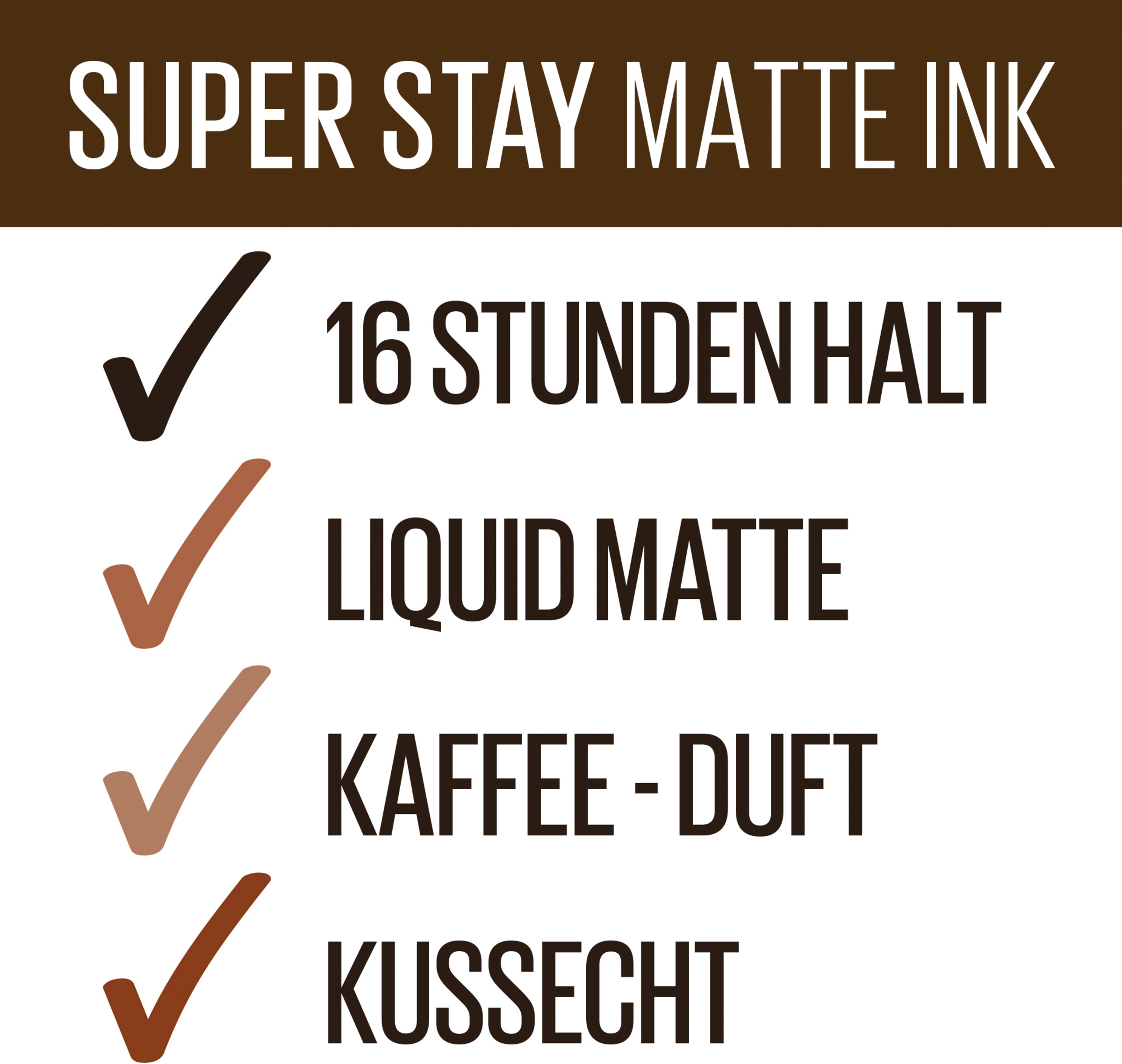But first Coffee UND einen matten, langanhaltenden Lippenstift. Der Maybelline New York Super Stay Matte Ink Coffee Edition Liquid Lipstick ist der ideale Begleiter! Er setzt beeindruckende Akzente mit seinem matten Finish und hält bis zu 16 Stunden. Hinzu kommt der betörende Kaffee-Duft, der den Lippenstift so besonders macht! Dank seiner flüssigen Formel mit lichtreflektierenden Farbpigmenten genügt bereits eine Schicht für ein intensives Farbergebnis. Die Formel schenkt den Lippen zusätzlich ein trendiges Matt-Finish. Verwischen, Abfärben oder Abbröckeln ist mit diesem matten und langanhaltenden Lippenstift Geschichte! Durch seine innovative Applikator-Spitze steht auch einem präzisen Auftrag nichts mehr im Wege. Für intensive Farbe die bis zu 16 Stunden hält.