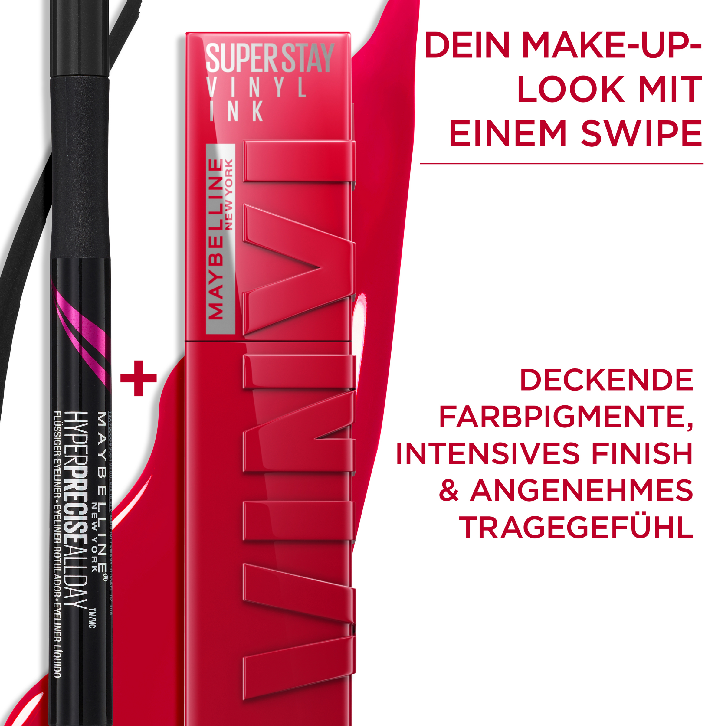 Der flüssige Maybelline New York Super Stay Vinyl Ink Nude Shock Lippenstift kreiert ein sofort glänzendes Vinyl-Finish mit intensiver Farbe und bis zu 16H Halt - ganz ohne zu verschmieren oder zu verblassen! Der Maybelline New York Super Stay Vinyl Ink Nude Shock ist ein absoluter Game Changer! Der flüssige Lippenstift sorgt für intensive Farbe und ein Vinyl-Finish auf den Lippen. Die vegane*, langanhaltende Formel hält bis zu 16 Stunden und verhindert Verschmieren und Verblassen. Hochpigmentierte Farben den ganzen Tag – werde zum absoluten Trendsetter mit dem Vinyl Lippen-Look. *Ohne Inhaltsstoffe tierischen Ursprungs.