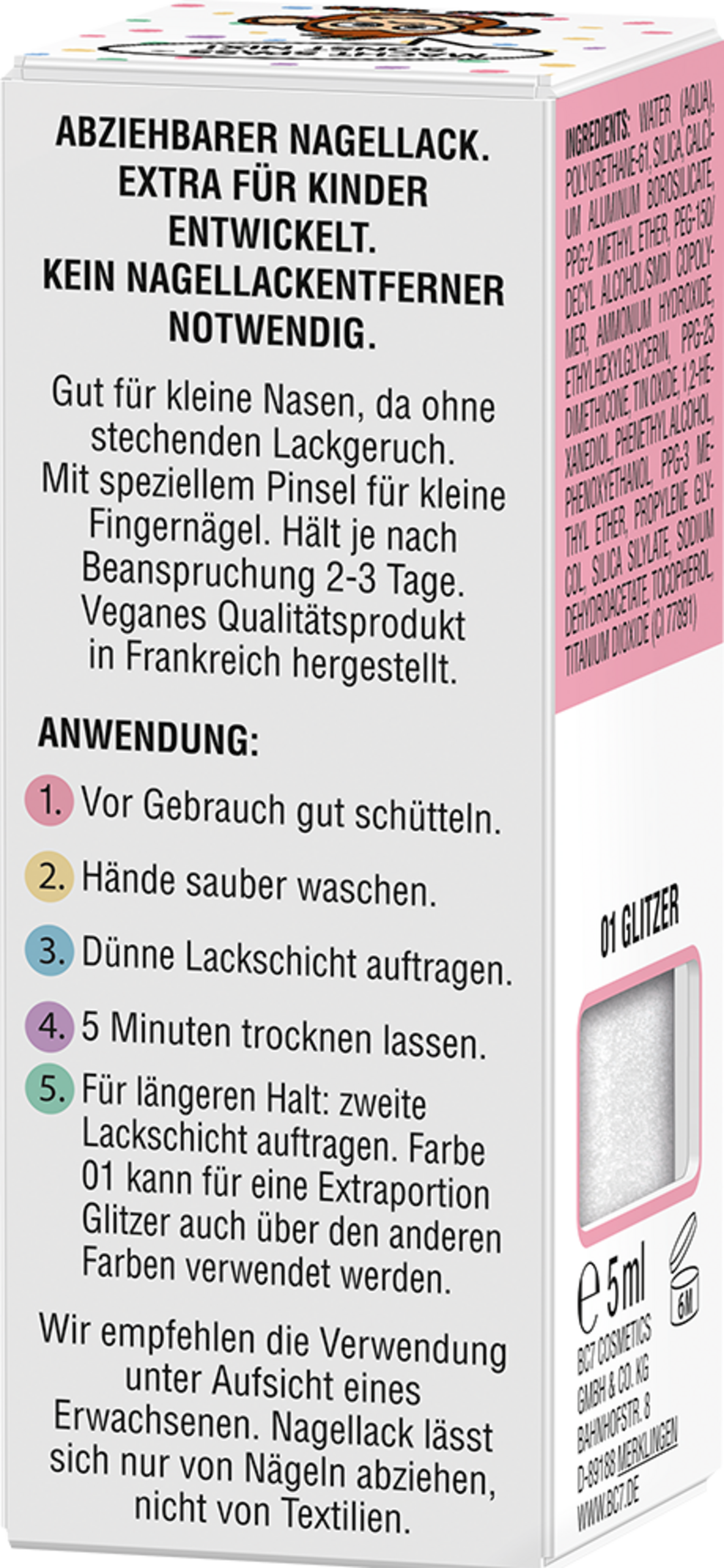 Peel-Off Nagellack: abziehbar, kein Nagellackentferner notwendig - sehr gut verträglich, da speziell für Kinder entwickelt.
