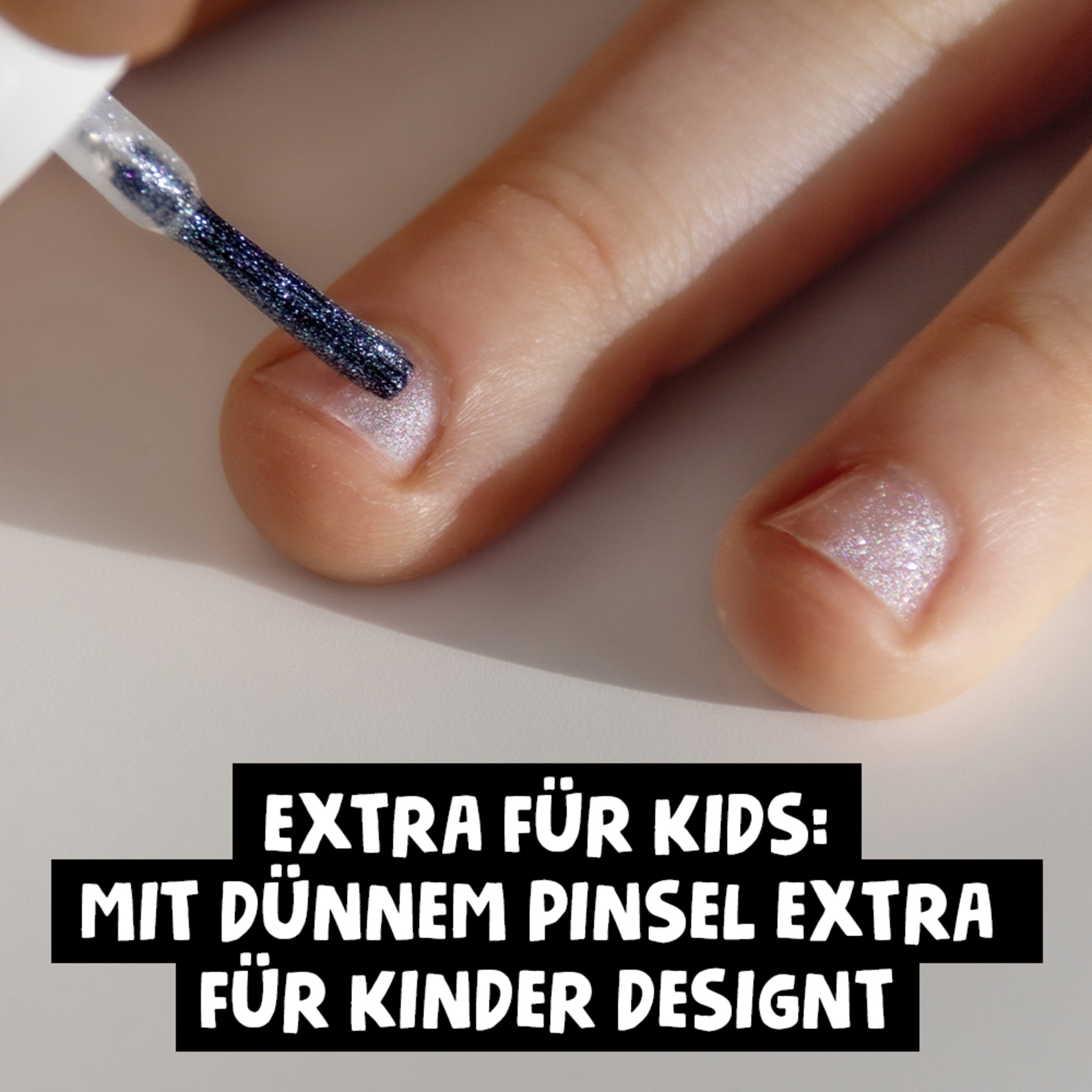 Extra für Kids: Mit speziellem Pinsel für kleine Kindernägel designt.